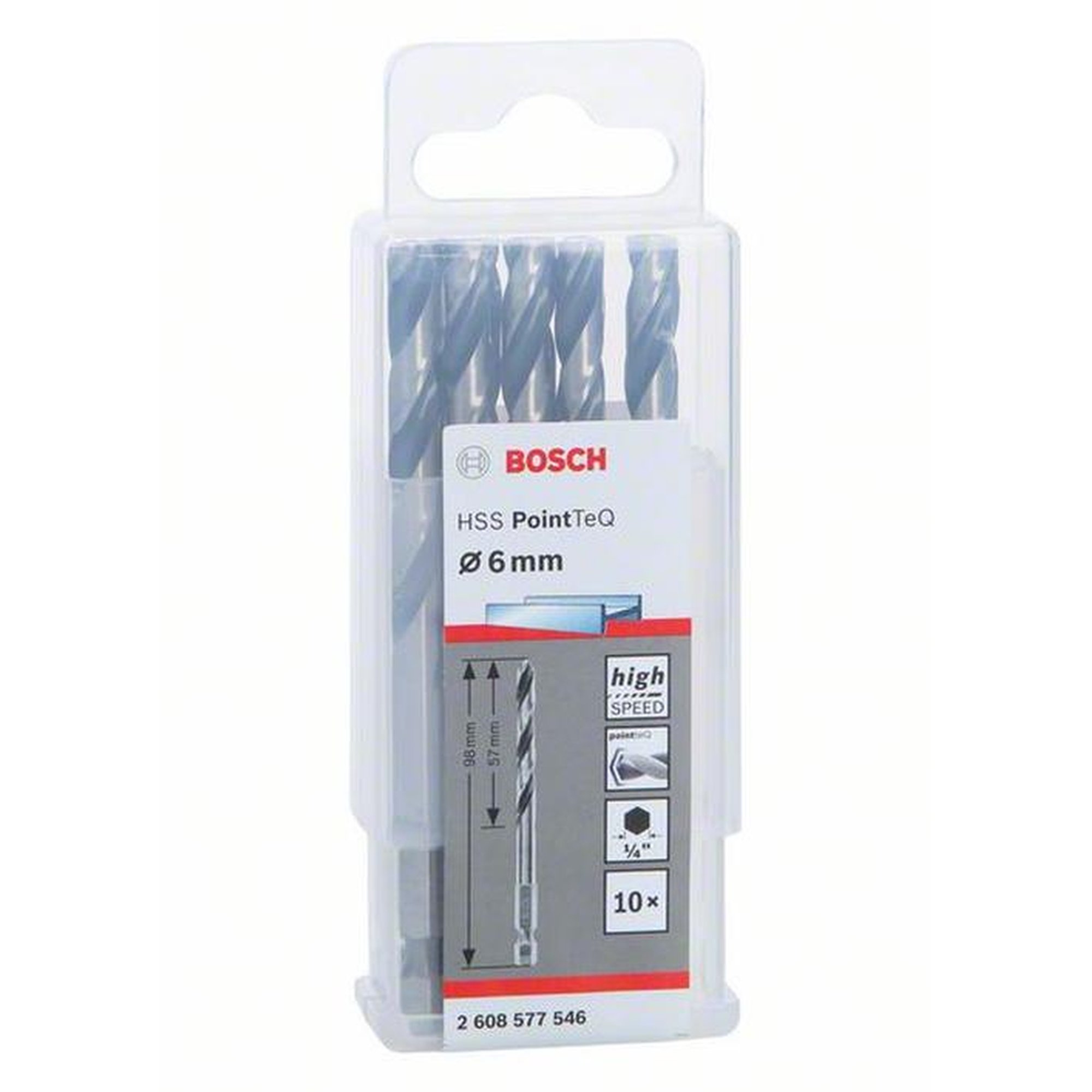 10x Bosch Professional HSS-Spiralbohrer PointTeQ mit Sechskantschaft , Ø 6,0 x 57 mm
