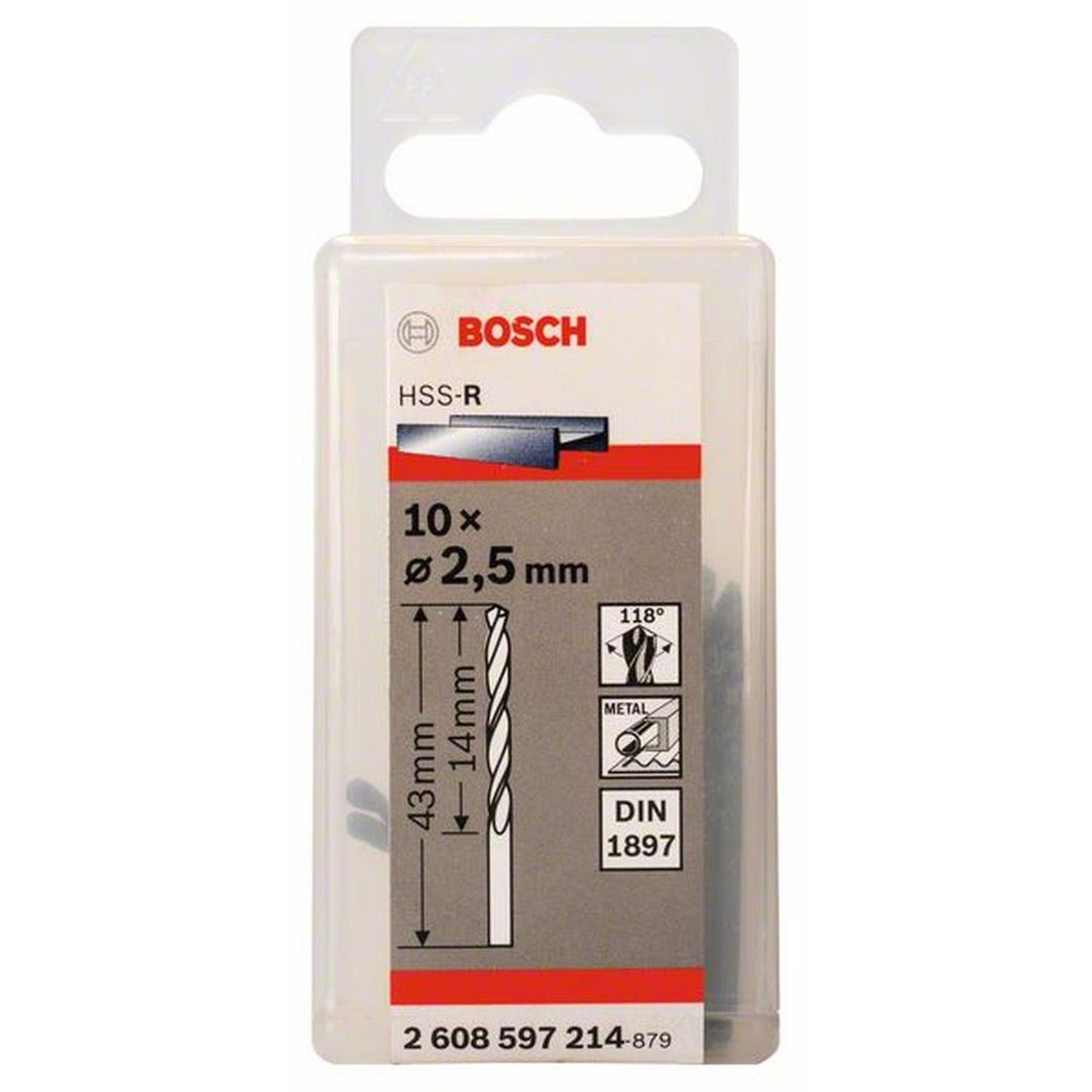 10x Bosch Professional Karosseriebohrer HSS-R, DIN 1897, Ø 2,5 x 14 mm