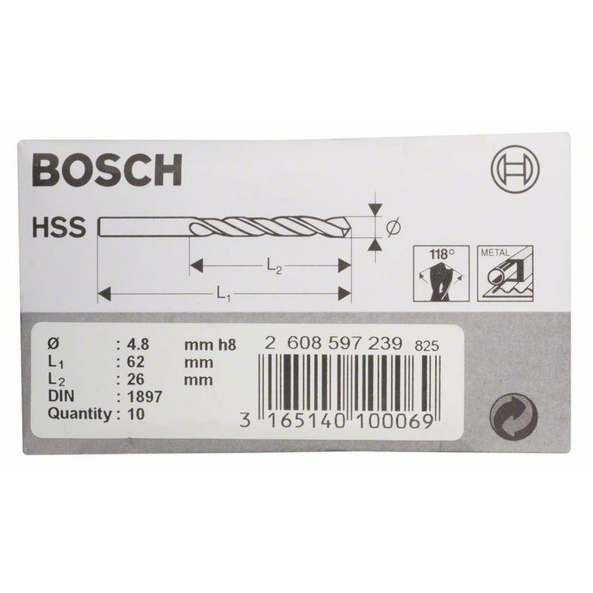10x Bosch Professional Karosseriebohrer HSS-R, DIN 1897, Ø 4,8 x 26 mm