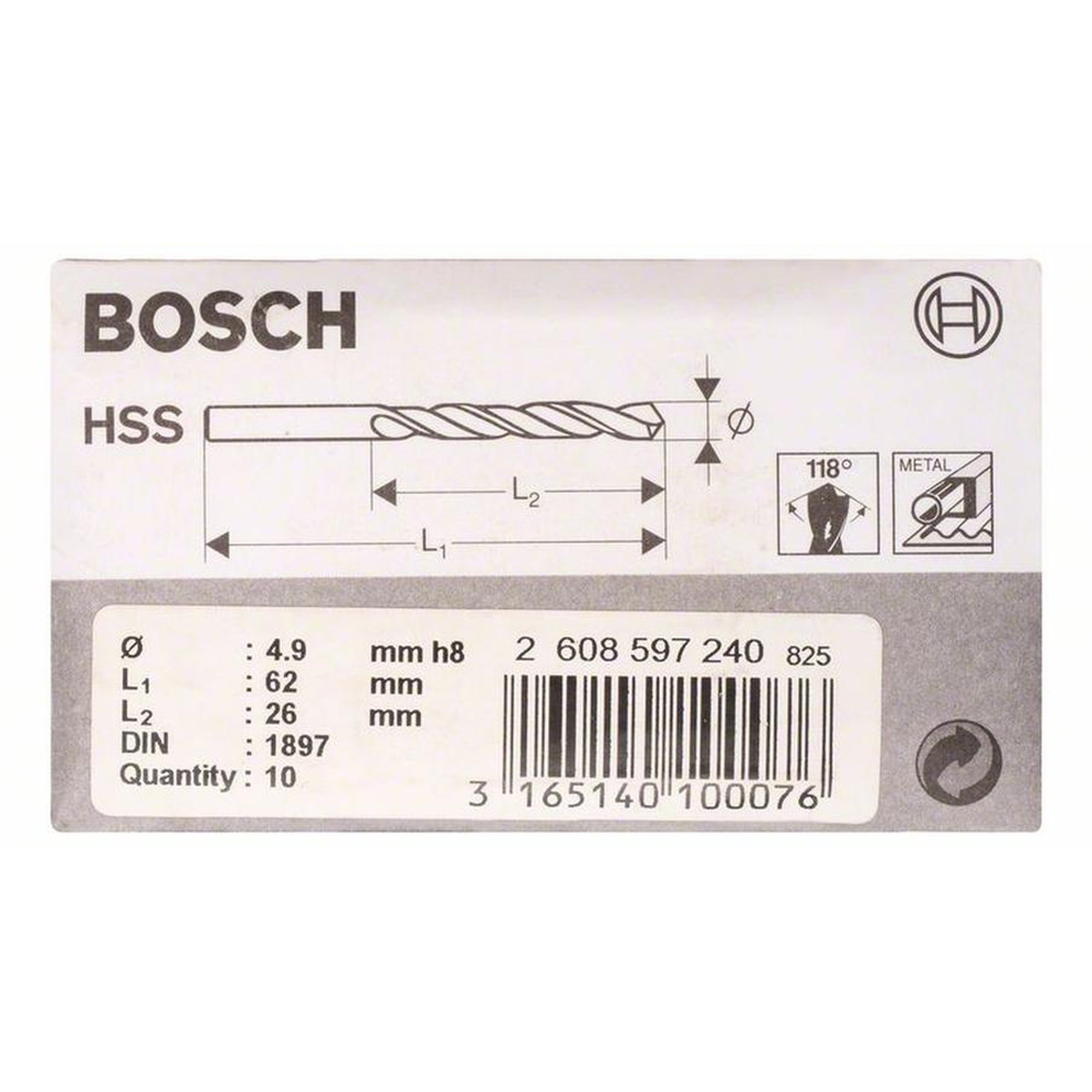 10x Bosch Professional Karosseriebohrer HSS-R, DIN 1897, Ø 4,9 x 26 mm