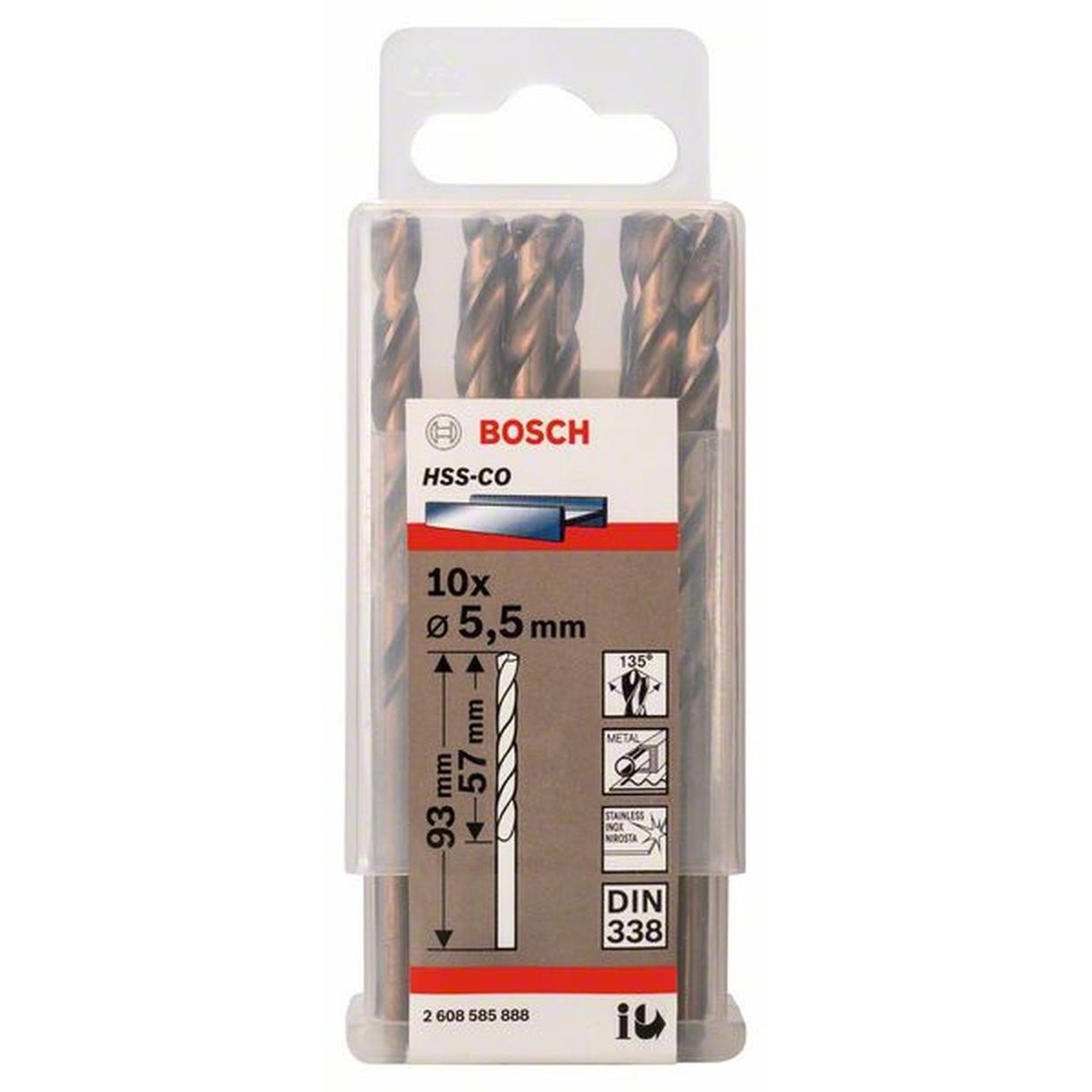 10x Bosch Professional Metallbohrer HSS-Co, DIN 338, Ø 5,5 x 57 mm