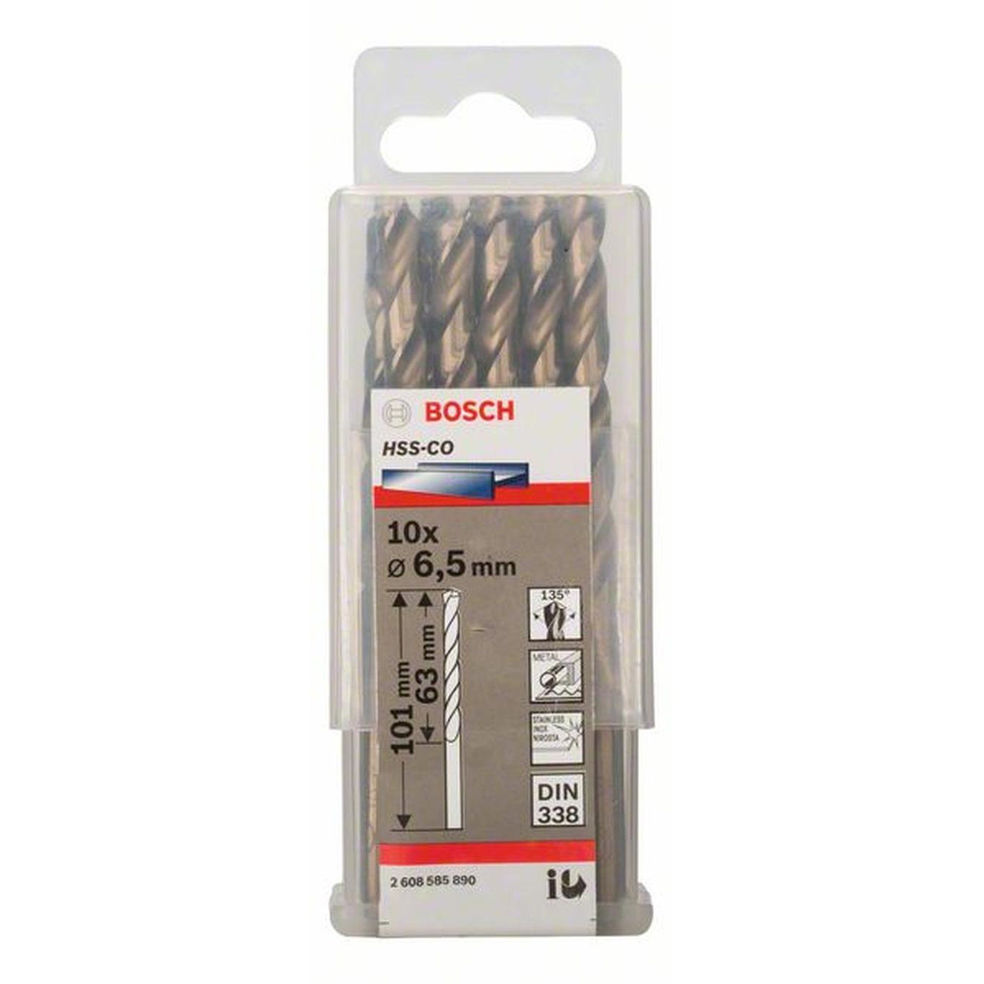 10x Bosch Professional Metallbohrer HSS-Co, DIN 338, Ø 6,5 x 63 mm