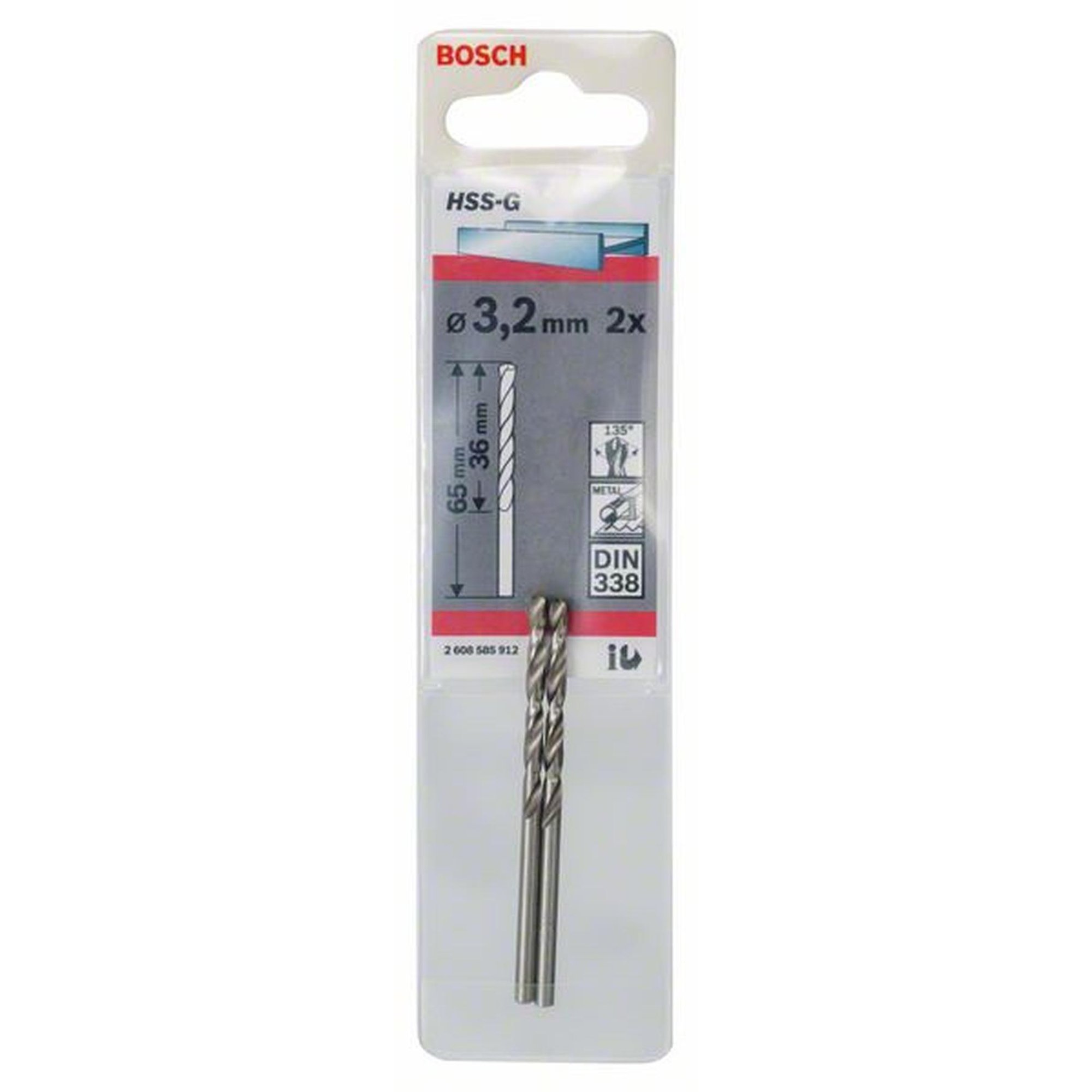 10x Bosch Professional Metallbohrer HSS-G, DIN 338, Ø 3,2 x 36 mm