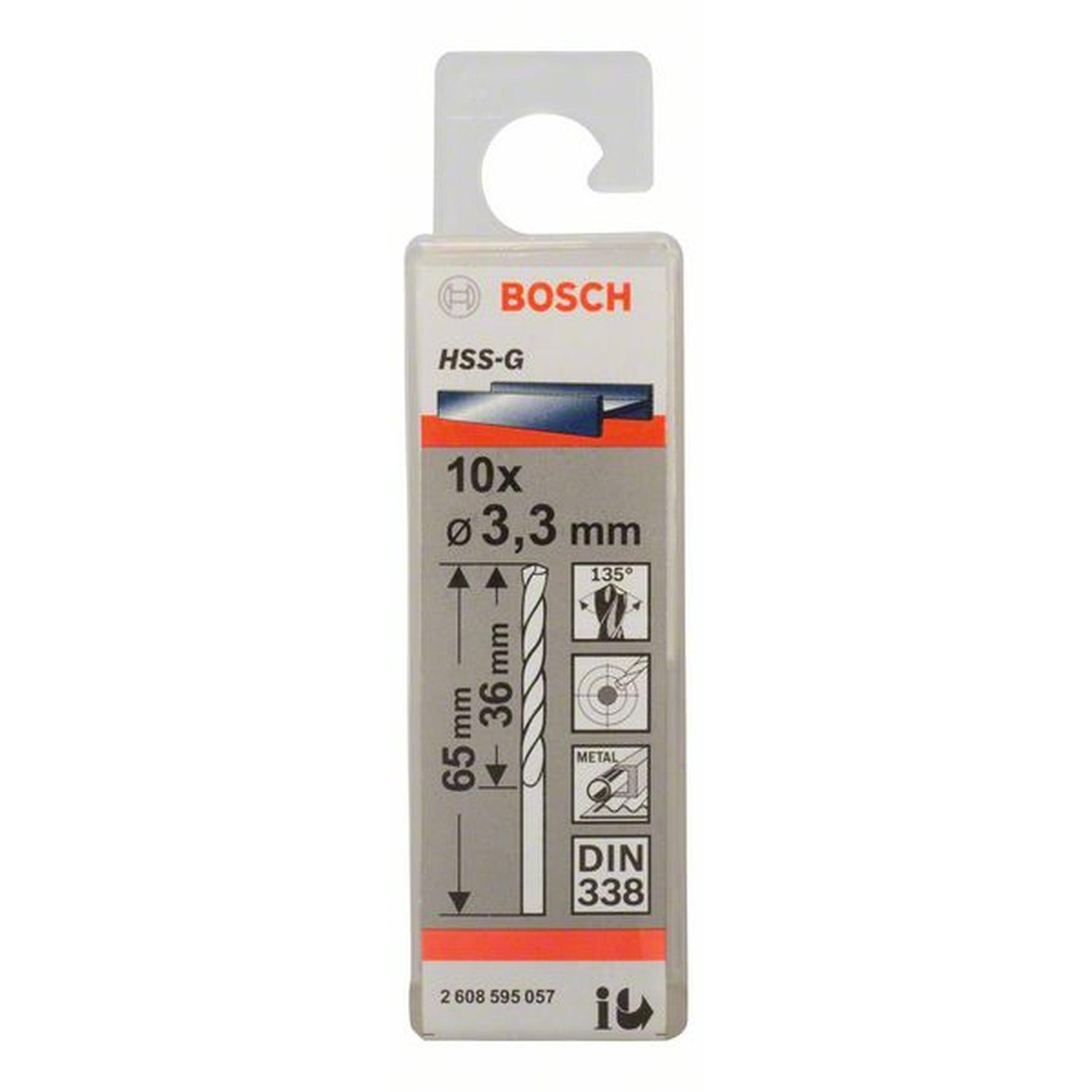 10x Bosch Professional Metallbohrer HSS-G, DIN 338, Ø 3,3 x 36 mm