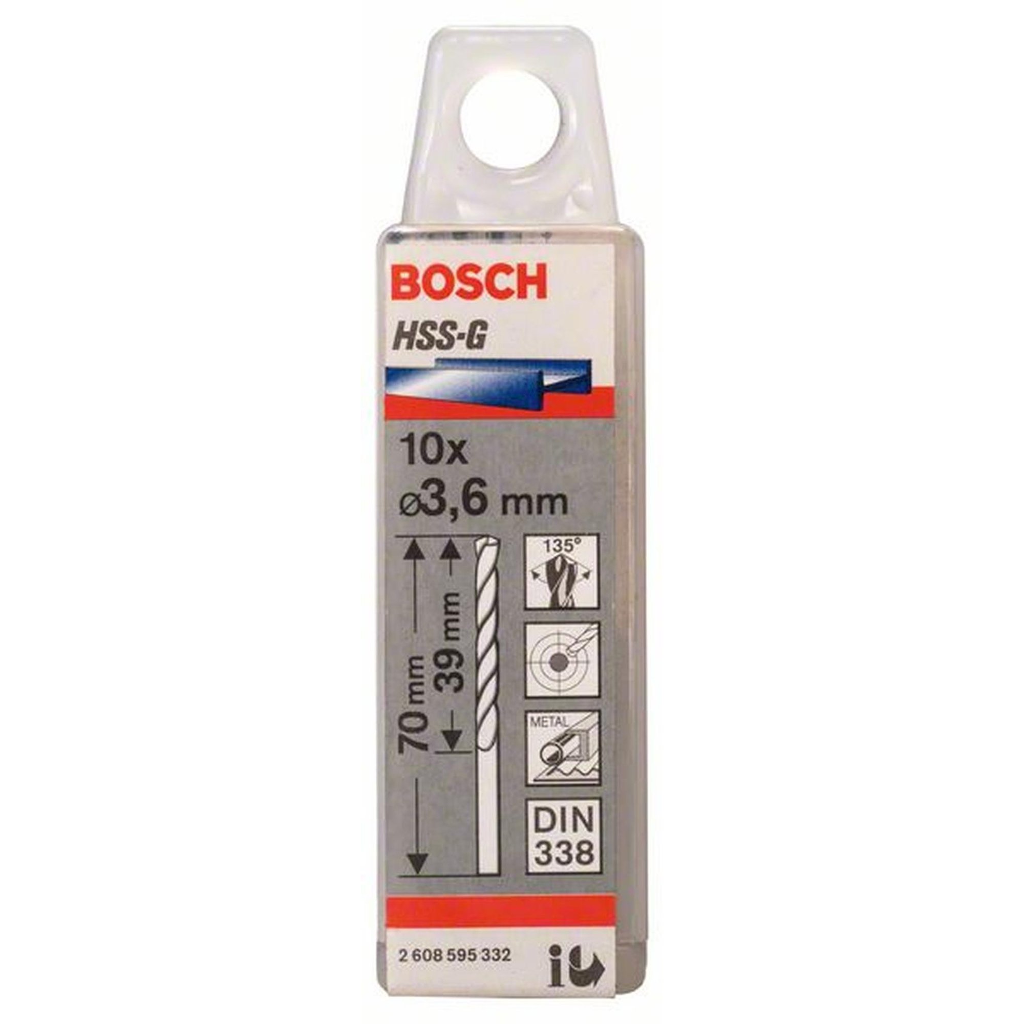 10x Bosch Professional Metallbohrer HSS-G, DIN 338, Ø 3,6 x 39 mm