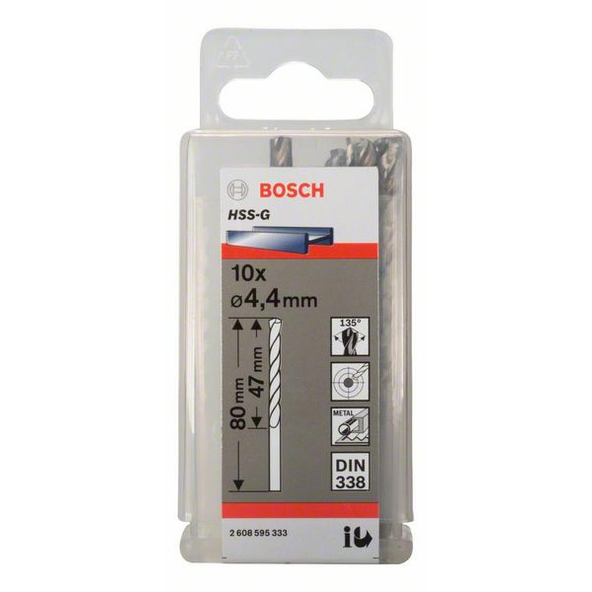 10x Bosch Professional Metallbohrer HSS-G, DIN 338, Ø 4,4 x 47 mm