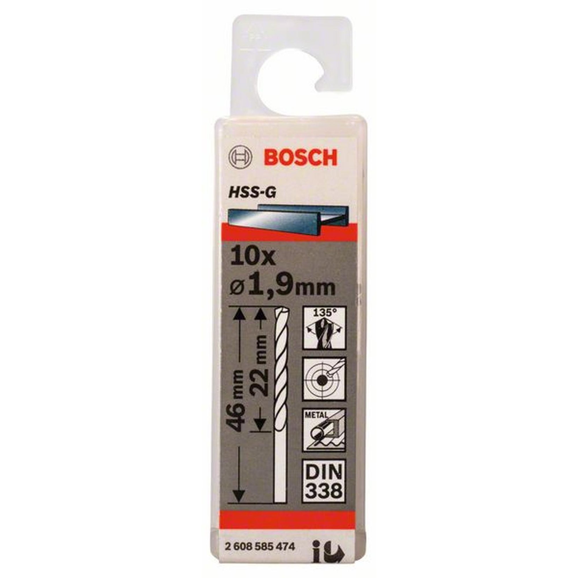 10x Bosch Professional Metallbohrer HSS-G, DIN , Ø 1,9 x 22 mm