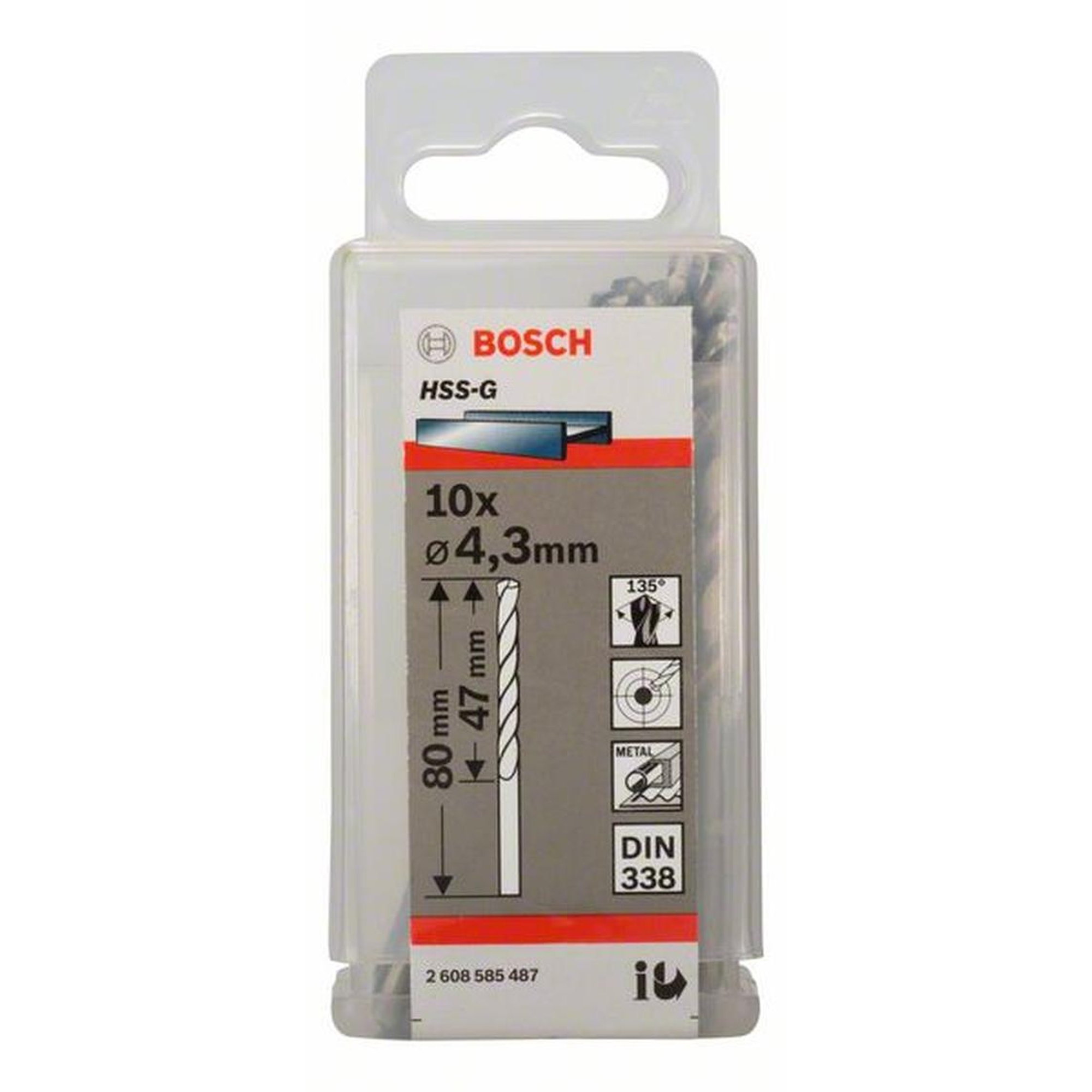10x Bosch Professional Metallbohrer HSS-G, DIN , Ø 4,3 x 47 mm