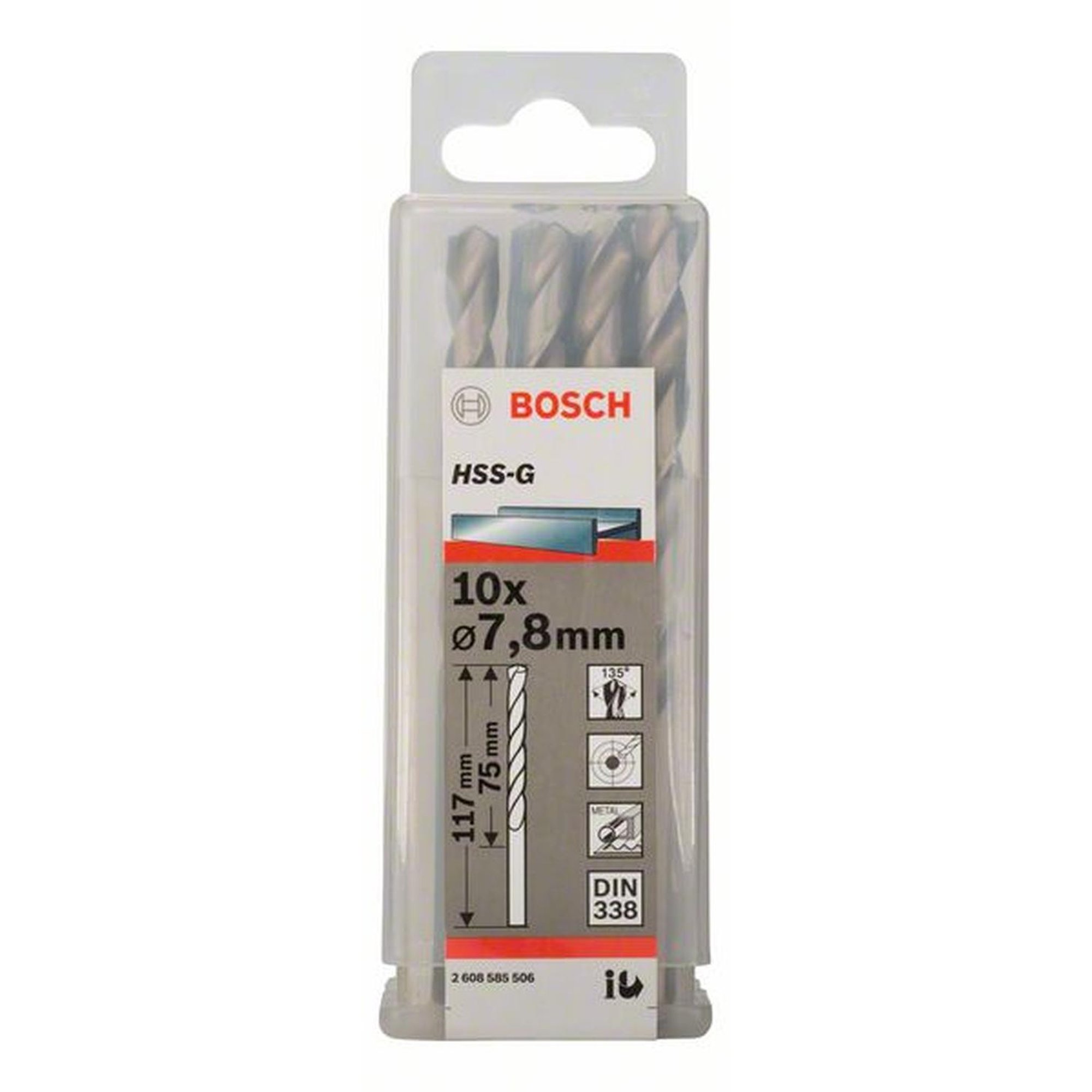 10x Bosch Professional Metallbohrer HSS-G, DIN , Ø 7,8 x 75 mm