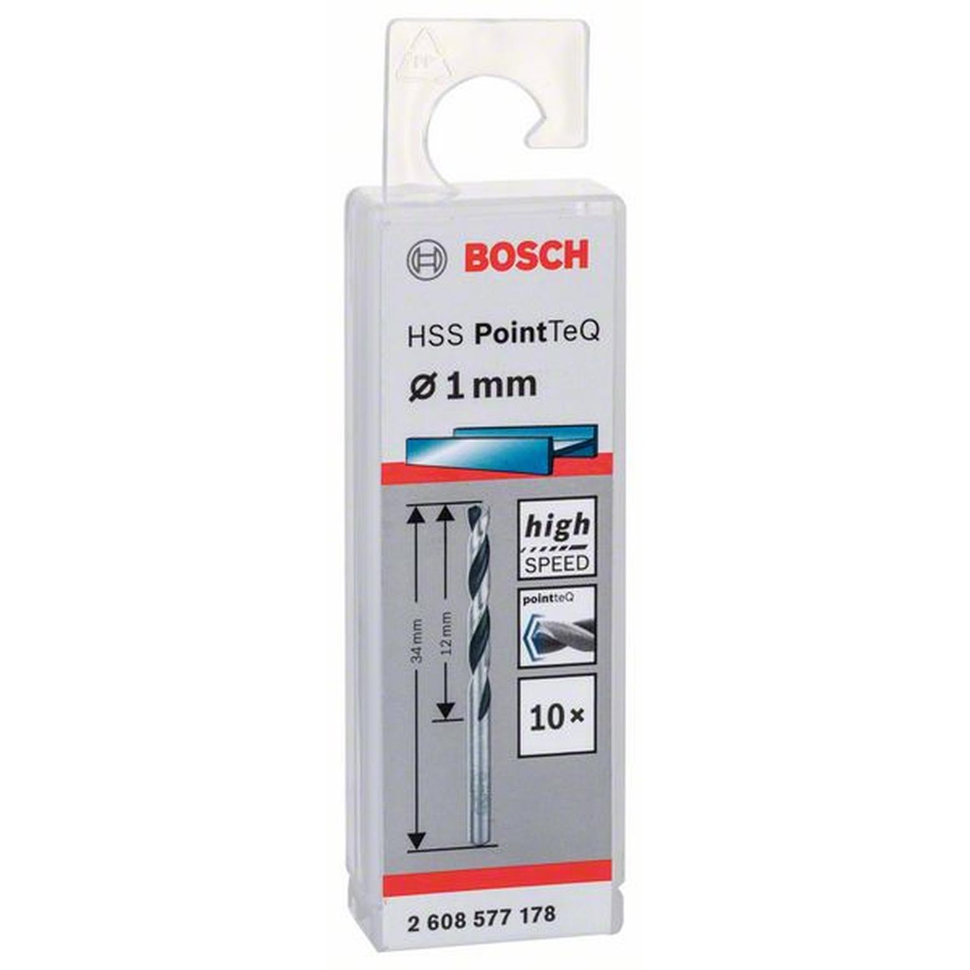 10x Bosch Professional Metallspiralbohrer HSS PointTeQ, DIN 338, Ø 1,0 x 12 mm