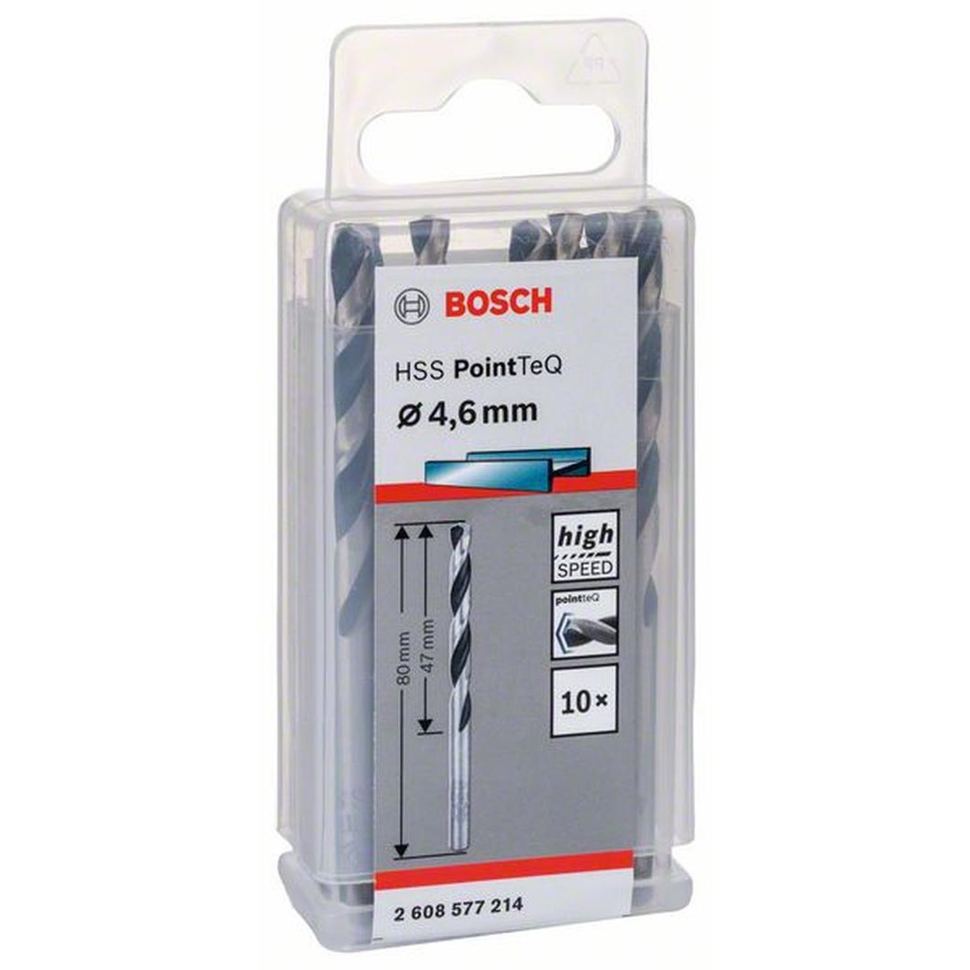10x Bosch Professional Metallspiralbohrer HSS PointTeQ, DIN 338, Ø 4,6 x 47 mm