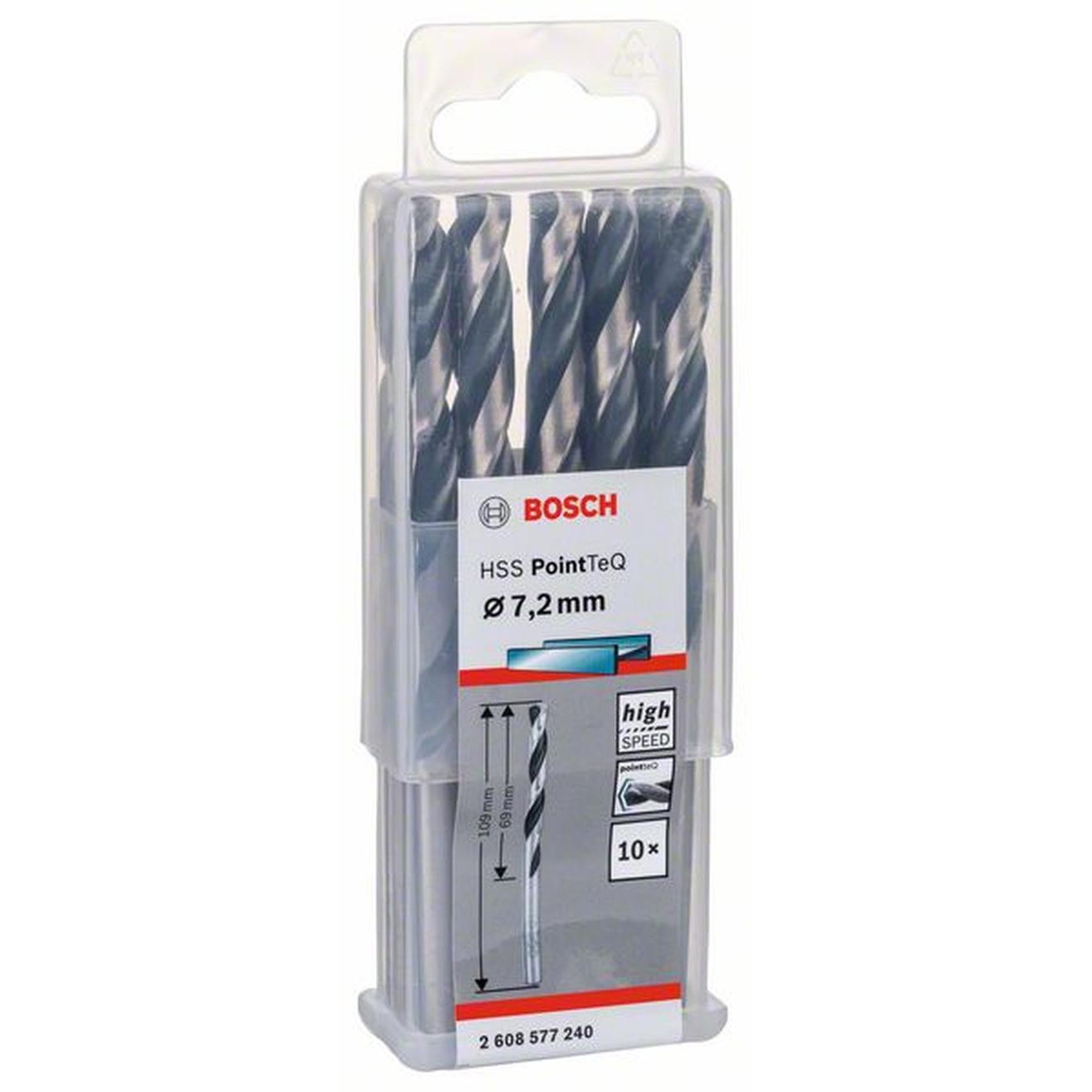 10x Bosch Professional Metallspiralbohrer HSS PointTeQ, DIN 338, Ø 7,2 x 69 mm