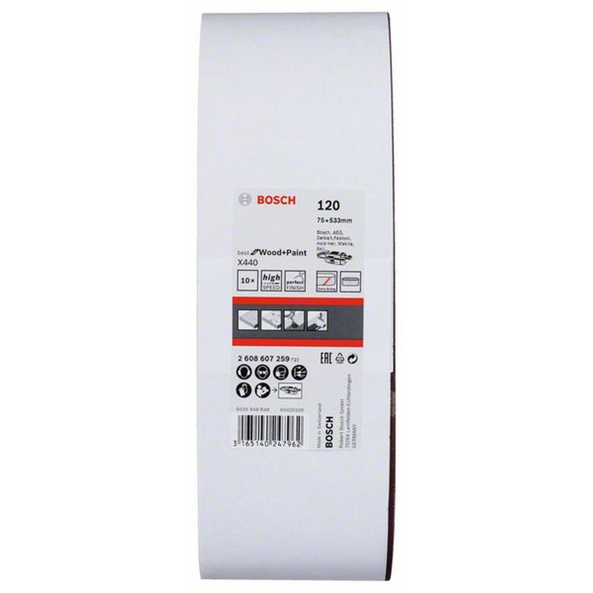 10x BOSCH Schleifband X440 Best für Holz und Farbe, 75 x 533 mm, 120