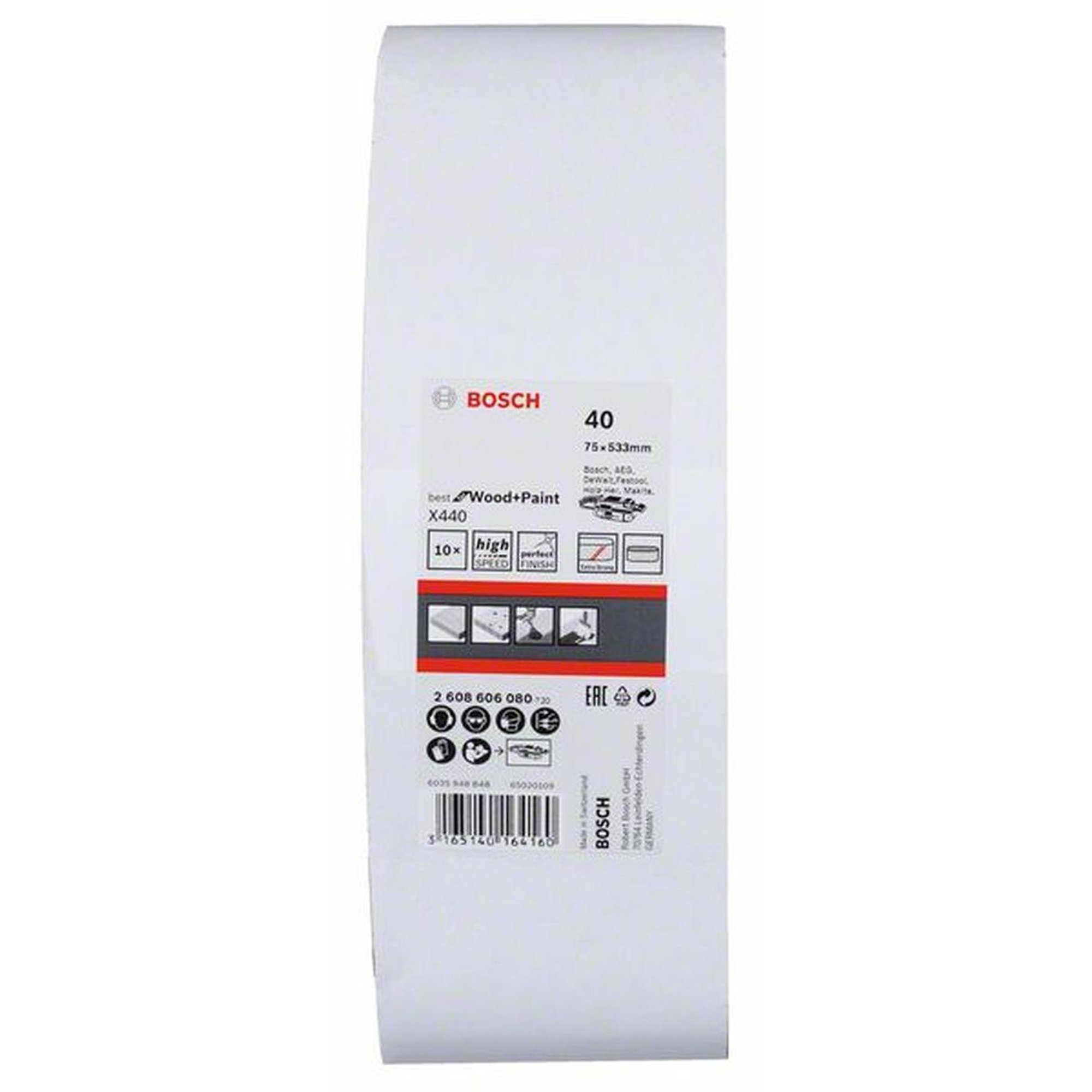 10x BOSCH Schleifband X440 Best für Holz und Farbe, 75 x 533 mm, 40