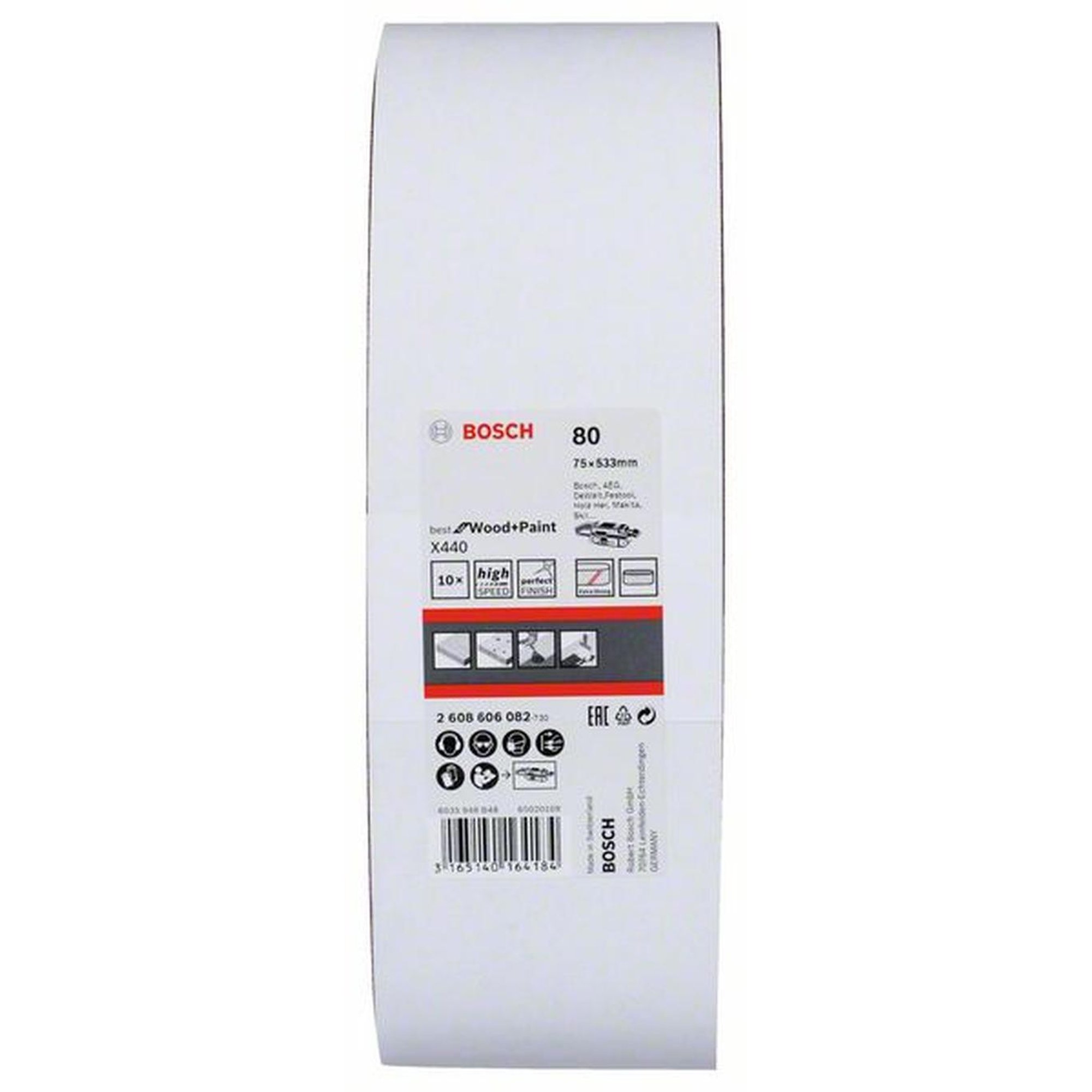 10x BOSCH Schleifband X440 Best für Holz und Farbe, 75 x 533 mm, 80