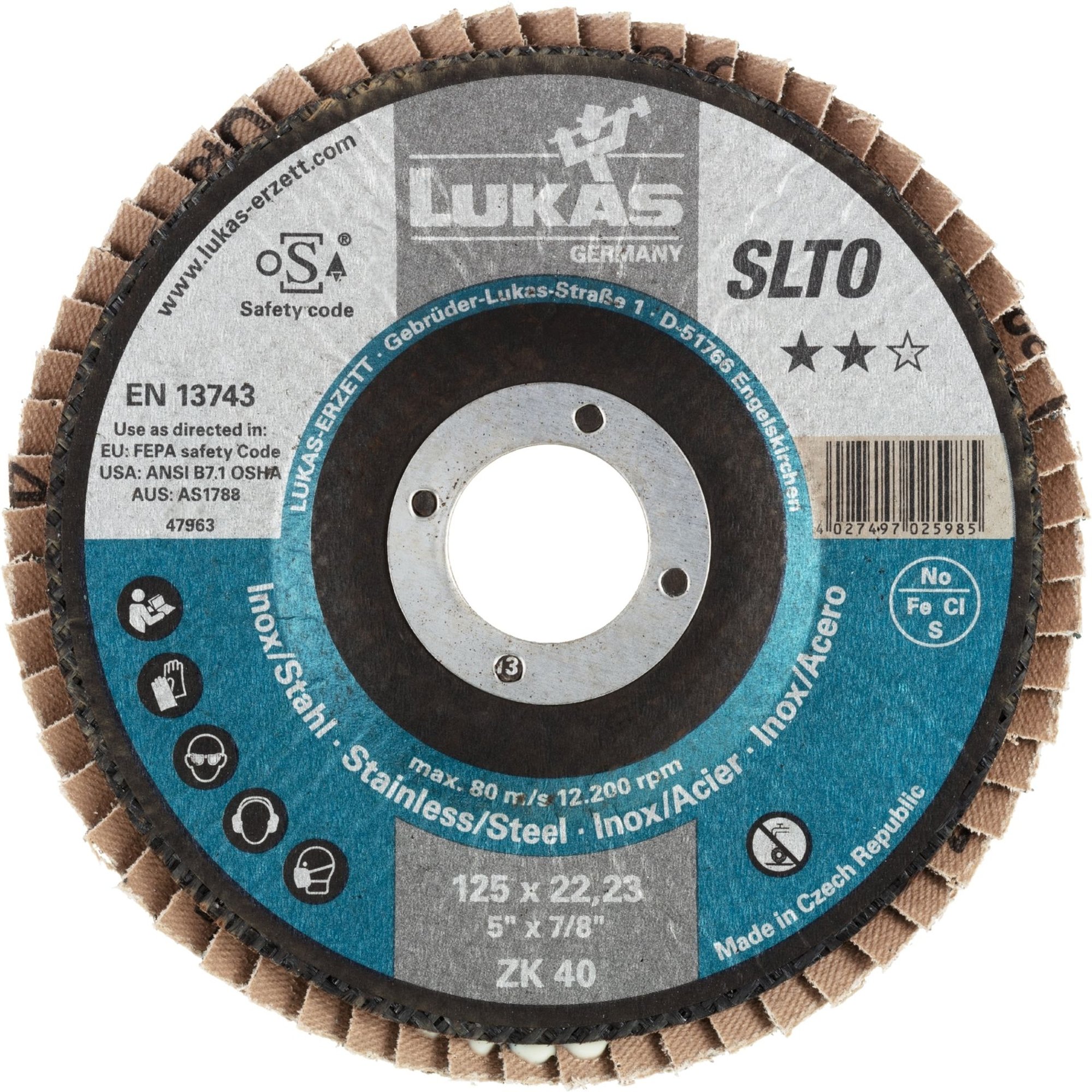 Mit dieser Fächerscheibe haben Sie ein zuverlässiges Werkzeug zur Hand, das Ihnen bei Ihren Schleifarbeiten beste Ergebnisse liefert. Überzeugen Sie sich selbst von der Qualität und Leistungsfähigkeit der LUKAS Fächerscheibe SLTR Ø 125mm Korn 120.