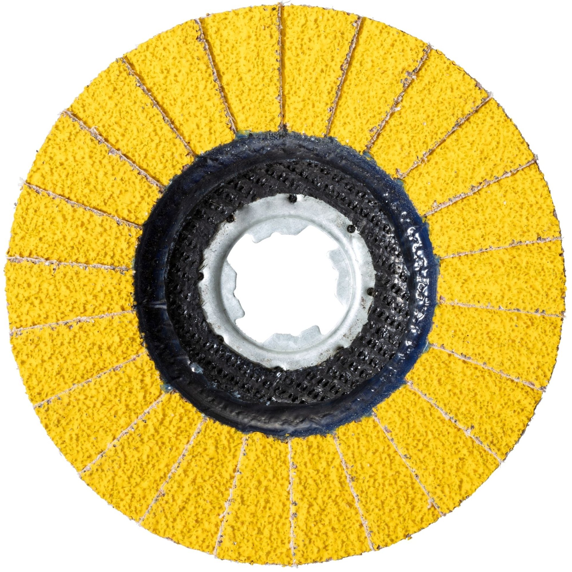 Fächerschleifscheiben von LUKAS-ERZETT in Industriequalität. LUKAS-patentierte Lamellenform für höchste Zerspannungsansprüche im universellen Einsatz - mit X-Lock-Aufnahme.