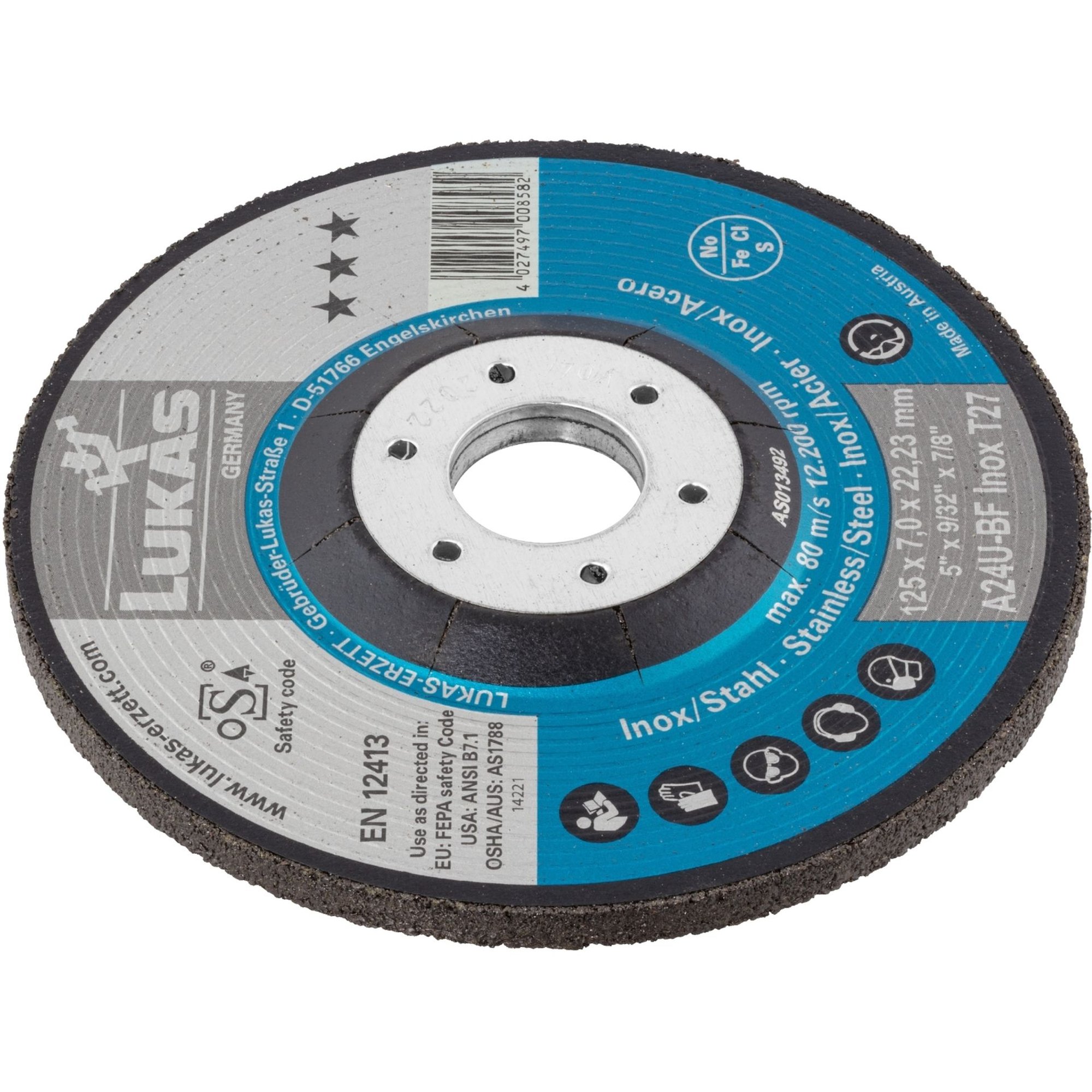 Bestellen Sie jetzt die LUKAS Schruppscheibe Schruppscheiben T27 Edelstahl 125x7mm gekröpft A24U-BF und erleben Sie selbst die Vorteile dieses hochwertigen Werkzeugs.