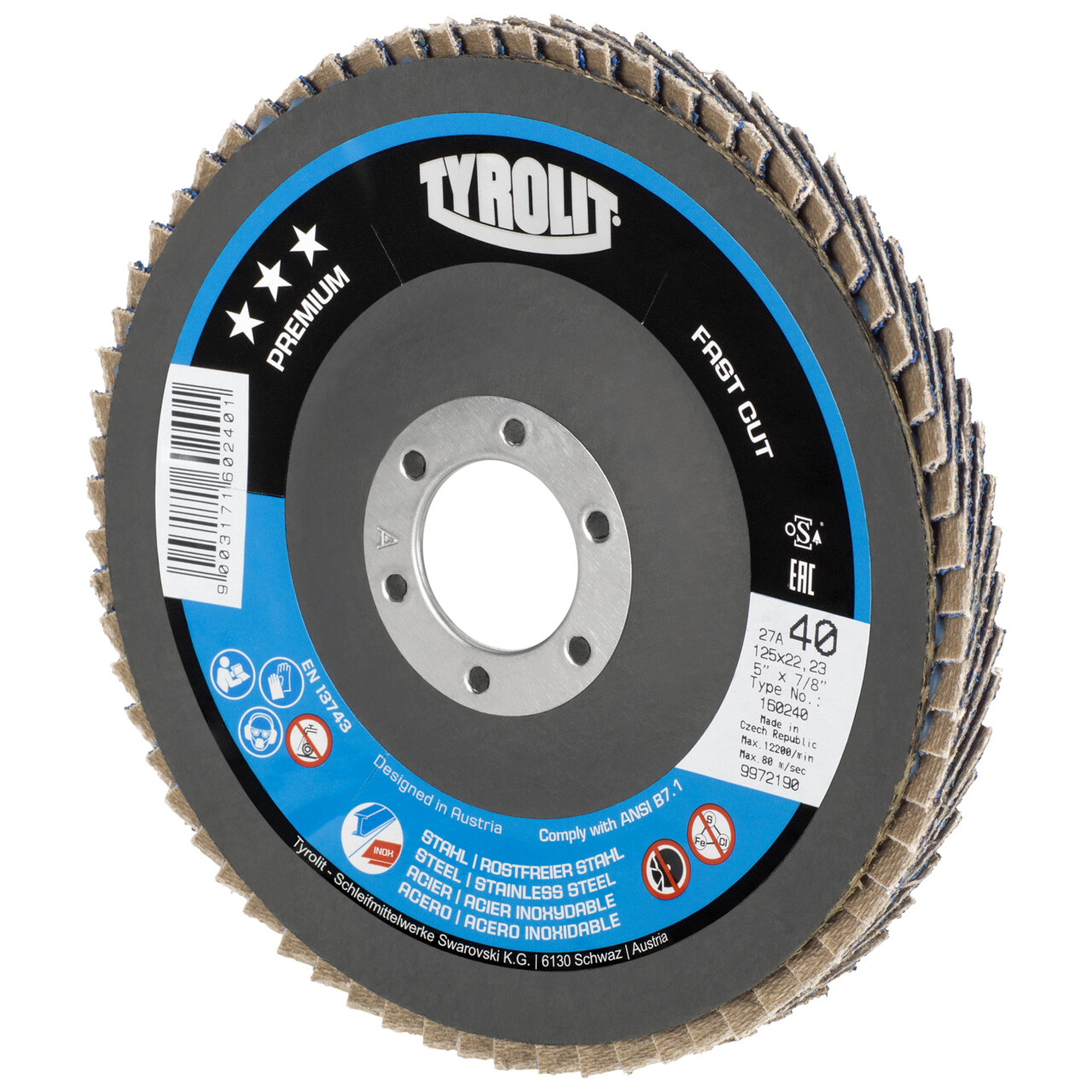 10x Tyrolit Fächerscheibe FASTCUT gerade 125x22,2 mm ZA40 PREMIUM Stahl/Inox
