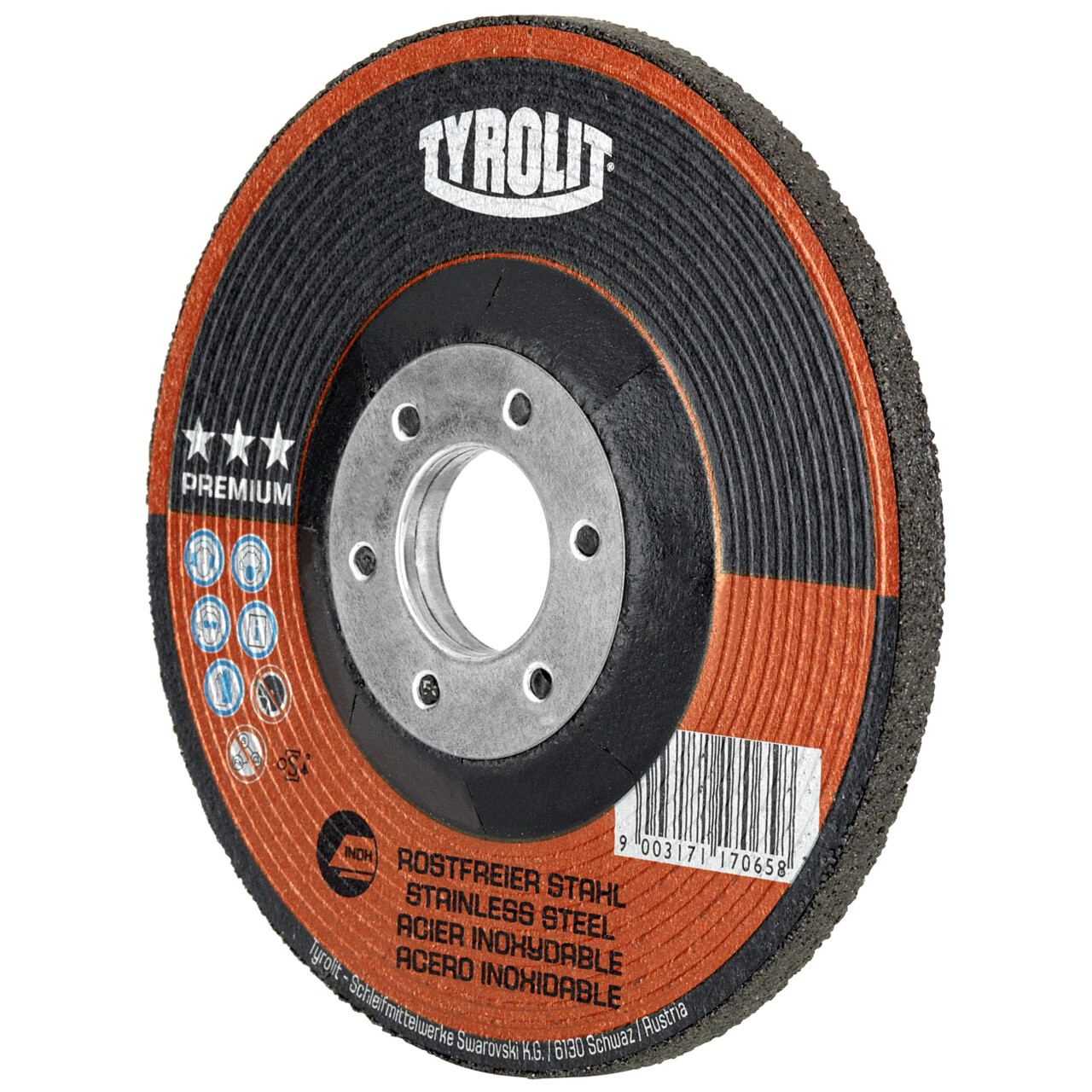 Die PREMIUM Schruppscheibe für den Winkelschleifer ist das perfekte Werkzeug für das effiziente und schnittige Schleifen von rostfreiem Stahl. Das spezielle Bindungssystem führt zu hervorragender Aggressivität und hoher Haltbarkeit in der Anwendung. Durch die chemische Reinheit des Produkts wird Korrosionsbildung und Lochfraß verhindert und eine schonende Behandlung des Werkstücks ermöglicht. Darüber hinaus sorgt die von Tyrolit eigens entwickelte „Comfort Start“-Technologie für einen angenehmen Start beim Schleifen, wodurch der Arbeitskomfort für den Anwender um ein Vielfaches erhöht wird. Die PREMIUM Schruppscheibe ist ideal, um eine Vielzahl von Schleifanwendungen auf unterschiedlichen Edelstahlqualitäten schnell und effizient zu erledigen.