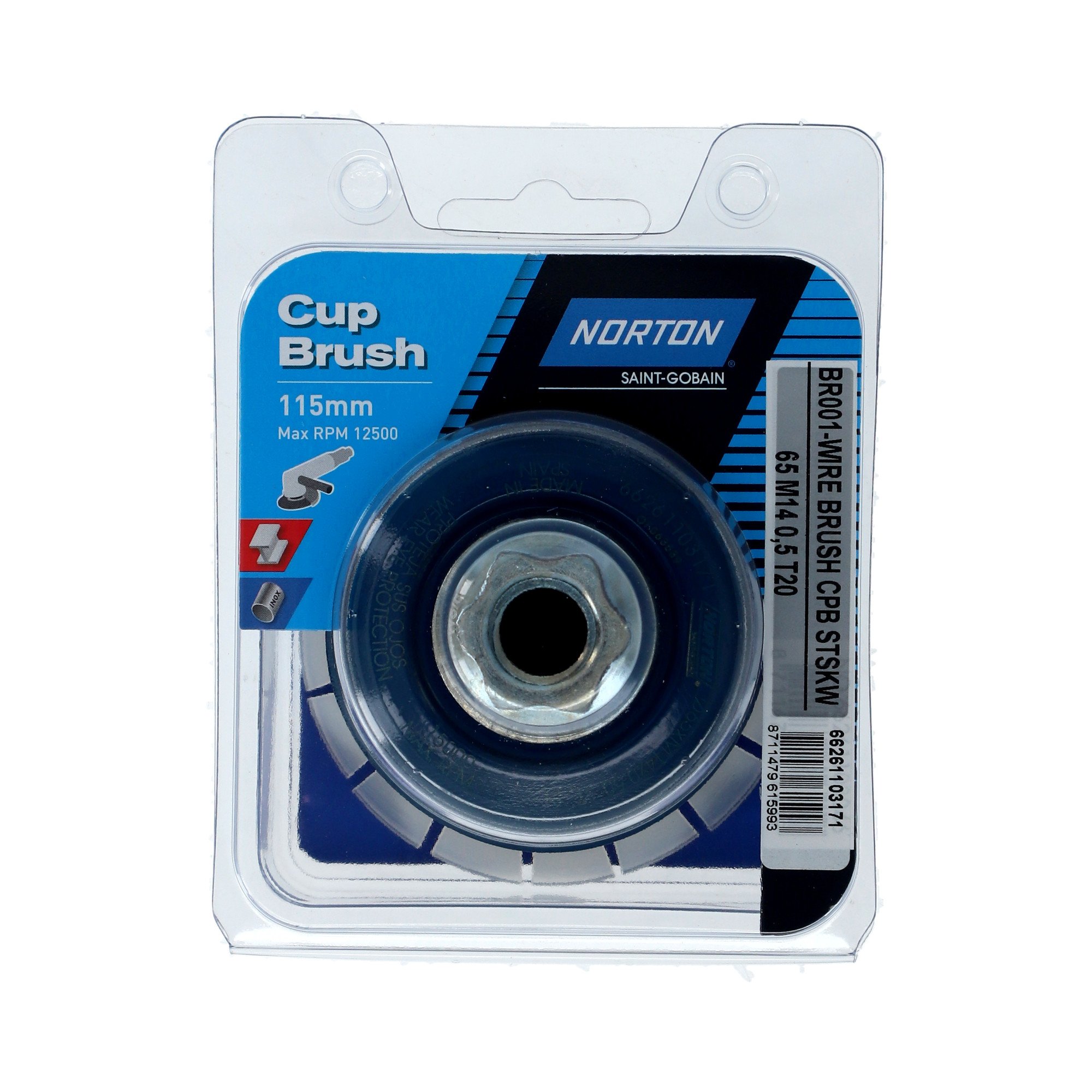 Die 12x NORTON Drahtbürste Topfbürste gezopft, Edelstahl (CPB) mit Sicherheitschutz CPB 65 M14 0,5 T20 ist ein vielseitiges Werkzeug, das speziell für das Bürsten an schwer zugänglichen Stellen wie Ecken und Kanten entwickelt wurde. Mit dieser Drahtbürste können Sie effektiv Rost, Korrosion, Farbe und Grundierungen entfernen.