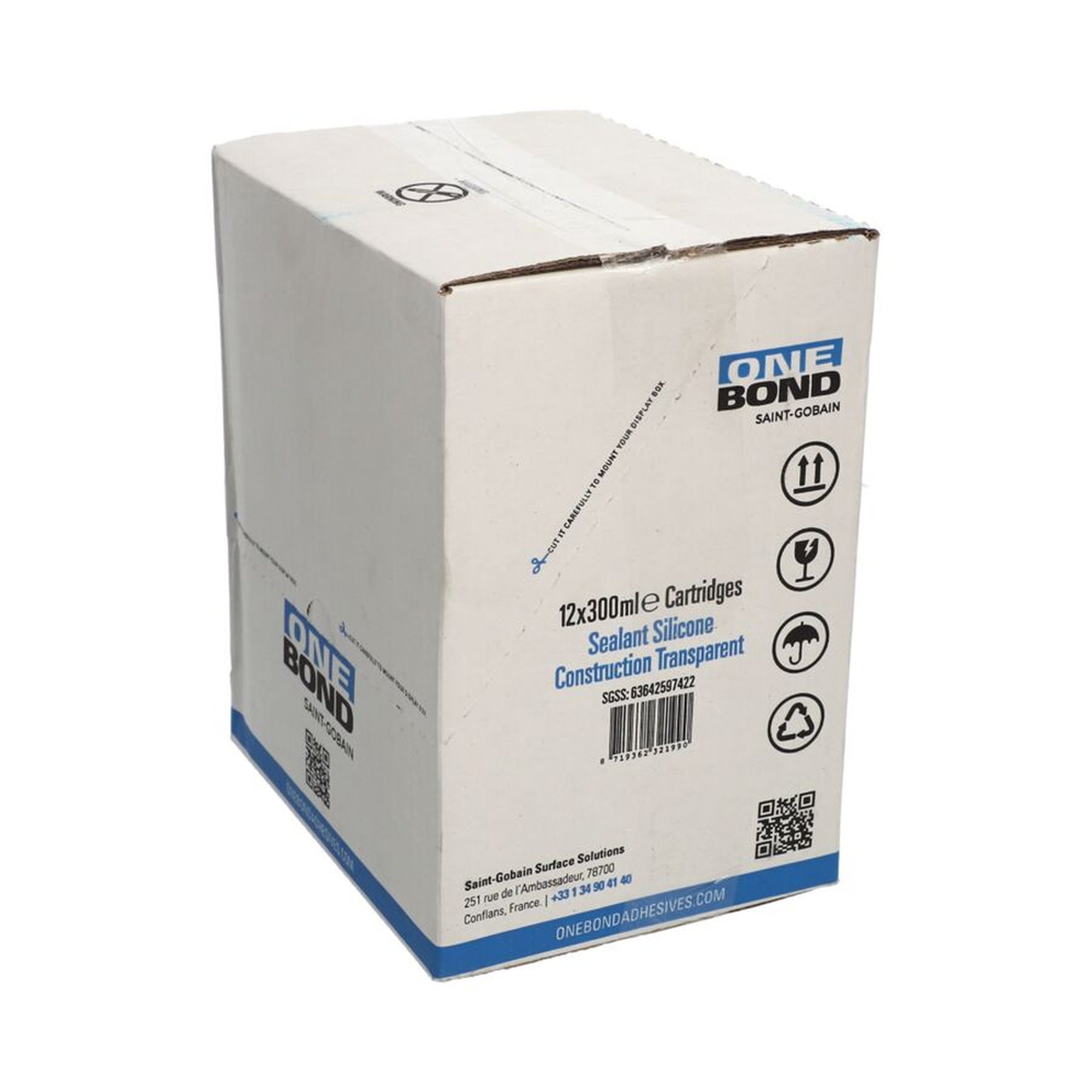 12 x Norton OneBond Construction Silikon Transparent 300ml Kartusche Kunststoff