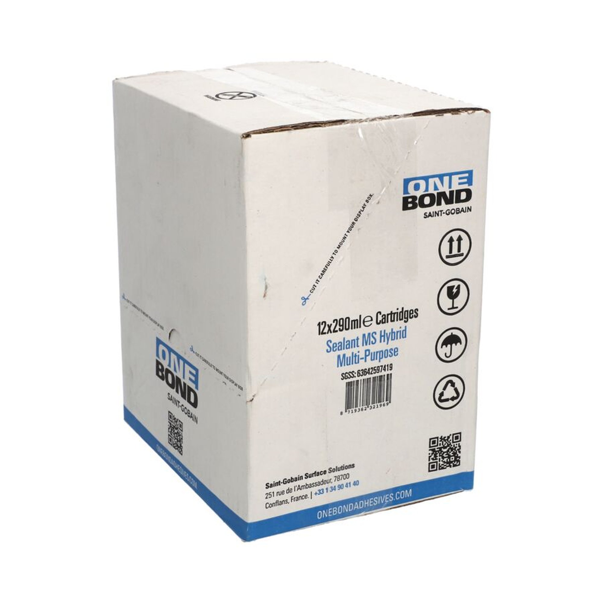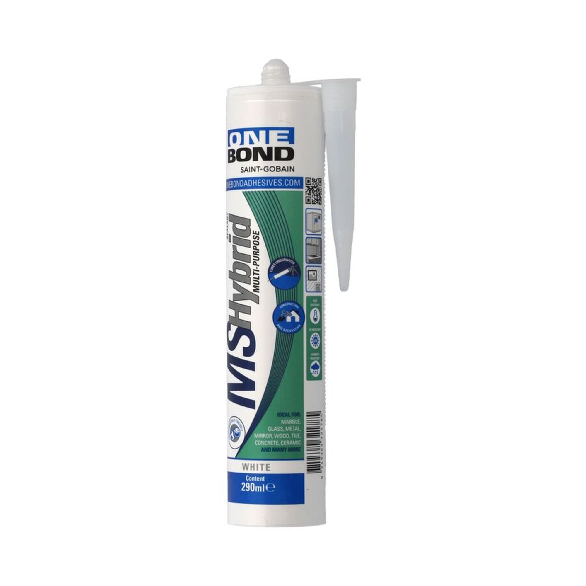 Der OneBond MS HYBRID MULTI-PURPOSE ist ein hochwertiger, elastischer Klebstoff und Dichtstoff, der in einer praktischen 290 ml Kunststoffkartusche angeboten wird. Die Farbe des Produkts ist ein ansprechendes Weißgrau, welches sich diskret in verschiedene Untergründe einfügt.