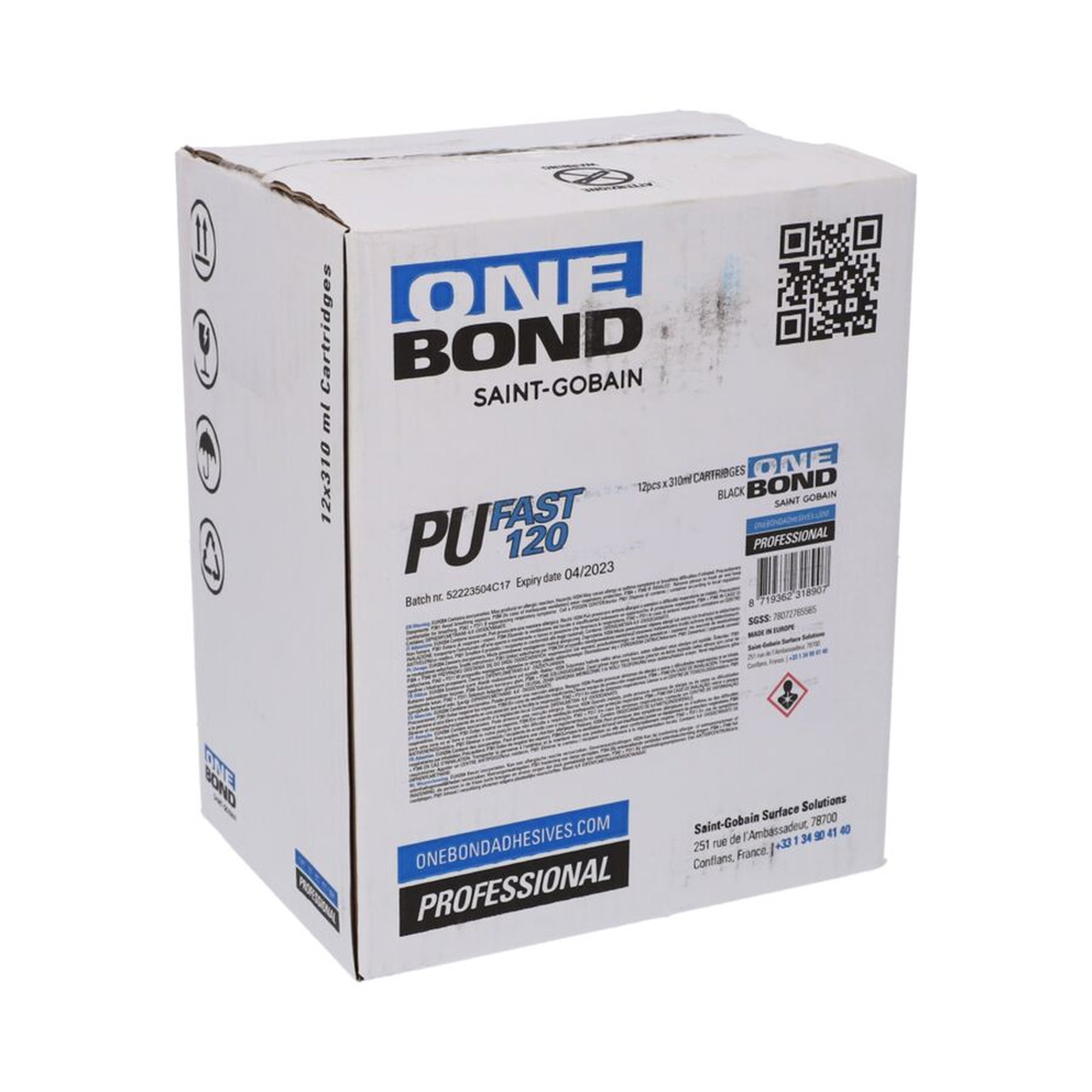 12 x Norton OneBond PU FAST 120 Min Sealers, 310ml, Schwarz, Aluminum Cartridge