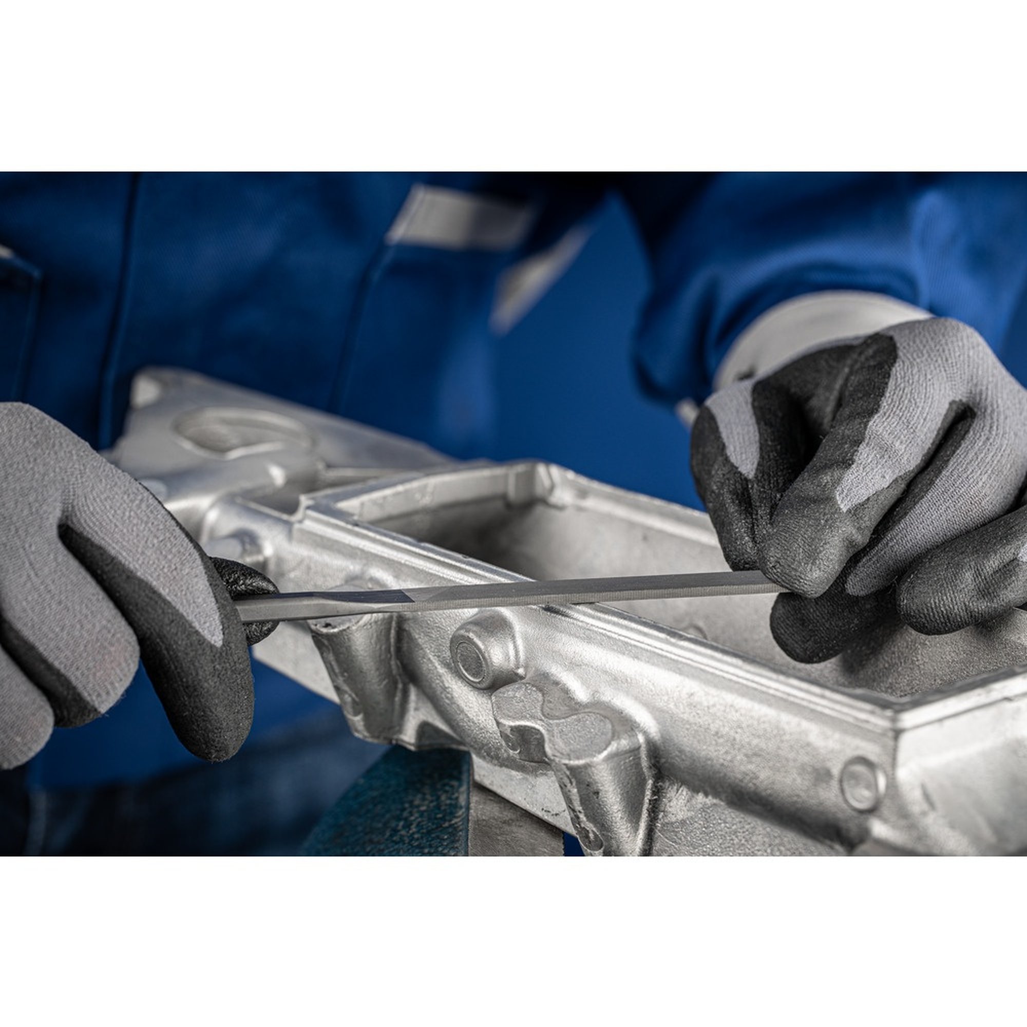 Die Feile ist aus hochwertigem Material gefertigt und bietet eine lange Lebensdauer. Sie ist robust und widerstandsfähig gegenüber Verschleiß und Abnutzung. Die Nadelfeilenähnliche Form ermöglicht eine präzise Bearbeitung von schwer zugänglichen Stellen, die mit anderen Werkzeugen nur schwer zu erreichen sind.
