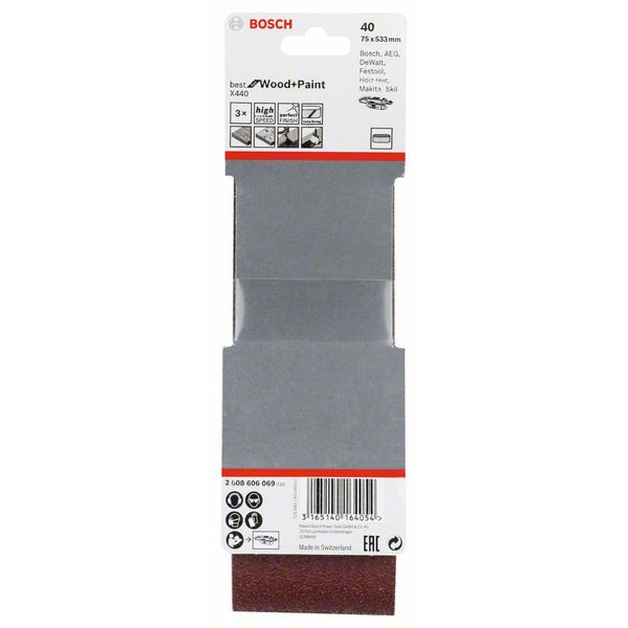 12x BOSCH Schleifband X440 Best für Holz und Farbe, 75 x 533 mm, 40