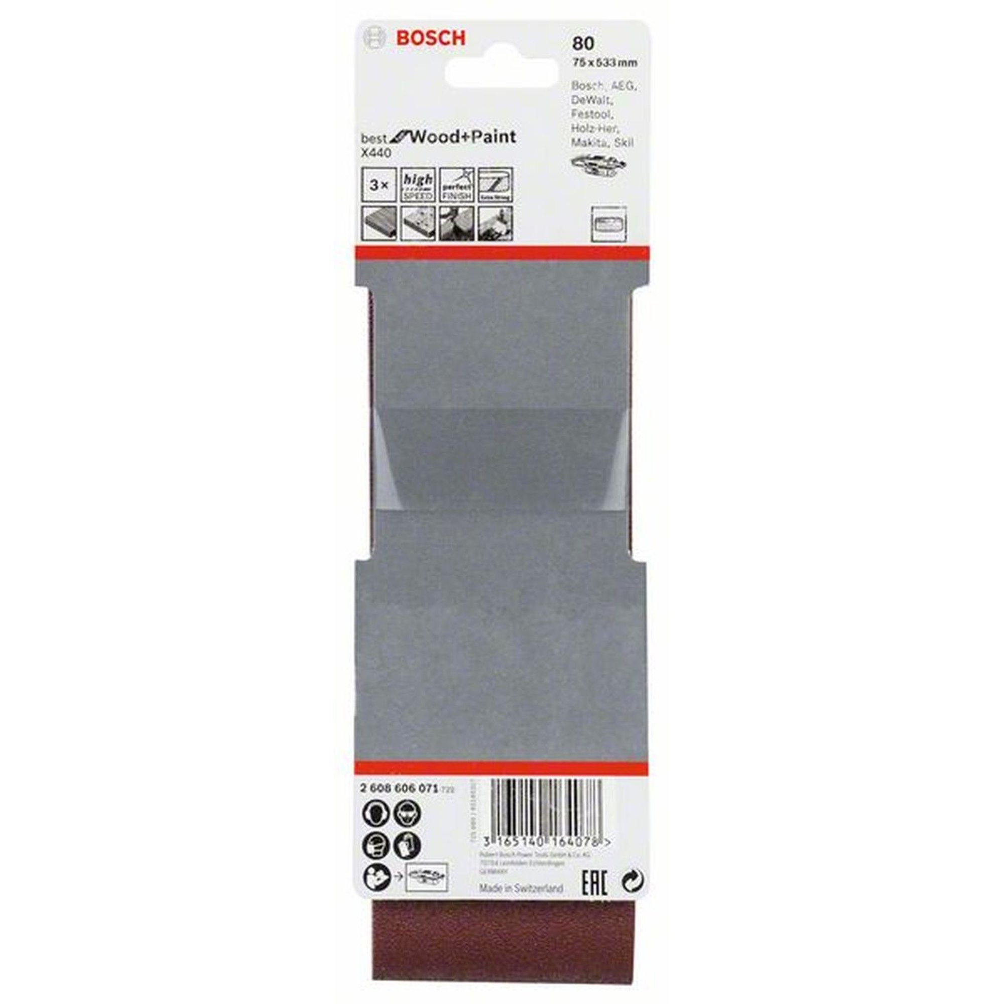 Besonderheiten: Das BOSCH Schleifband X440 Best for Wood and Paint zeichnet sich durch seine ideale Größe von 75 mm Breite und 533 mm Länge aus