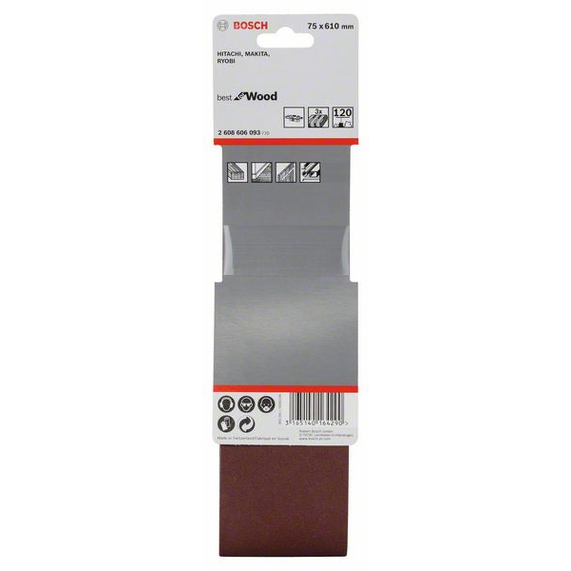 12x BOSCH Schleifband X440 Best für Holz und Farbe, 75 x 610 mm, 120