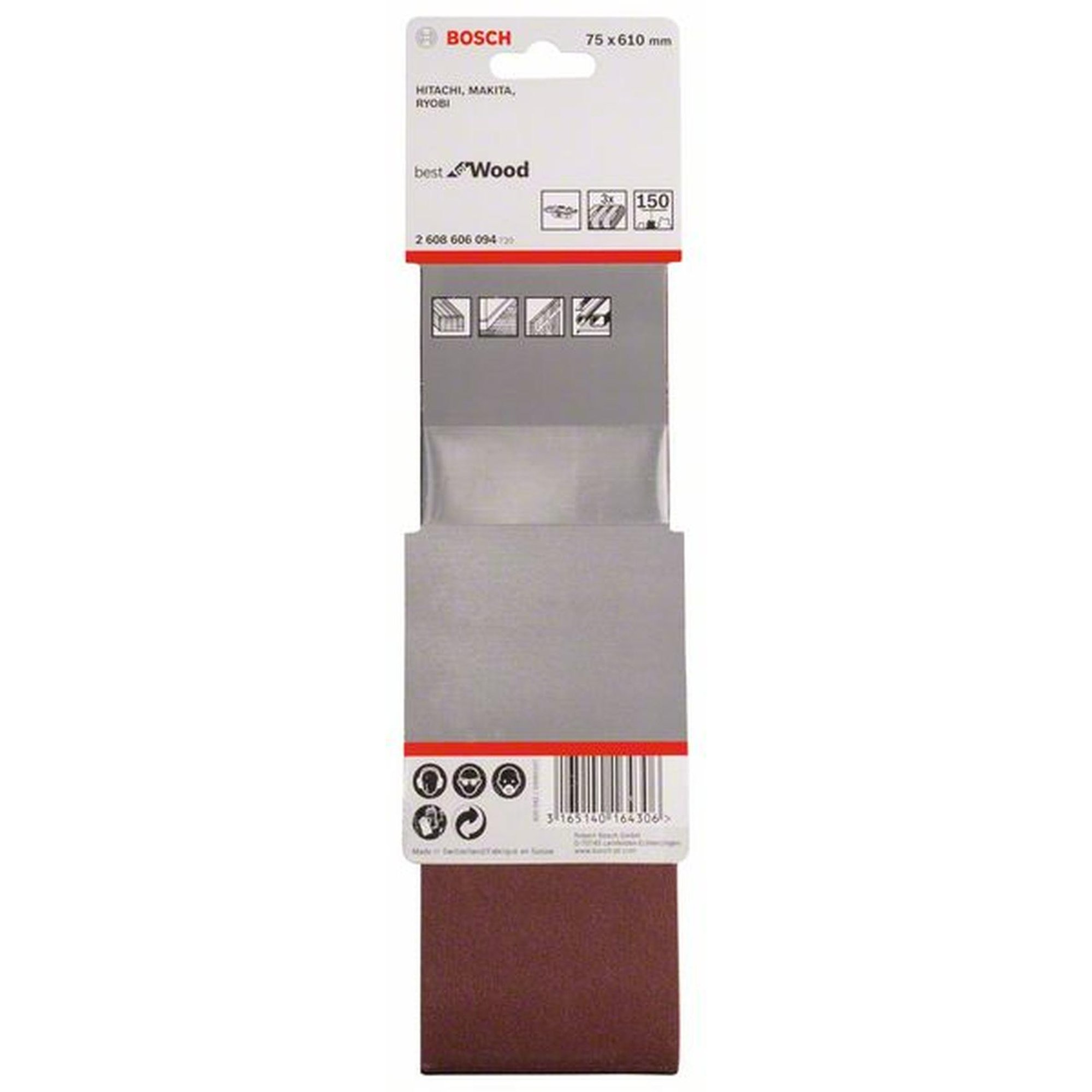 12x BOSCH Schleifband X440 Best für Holz und Farbe, 75 x 610 mm, 150