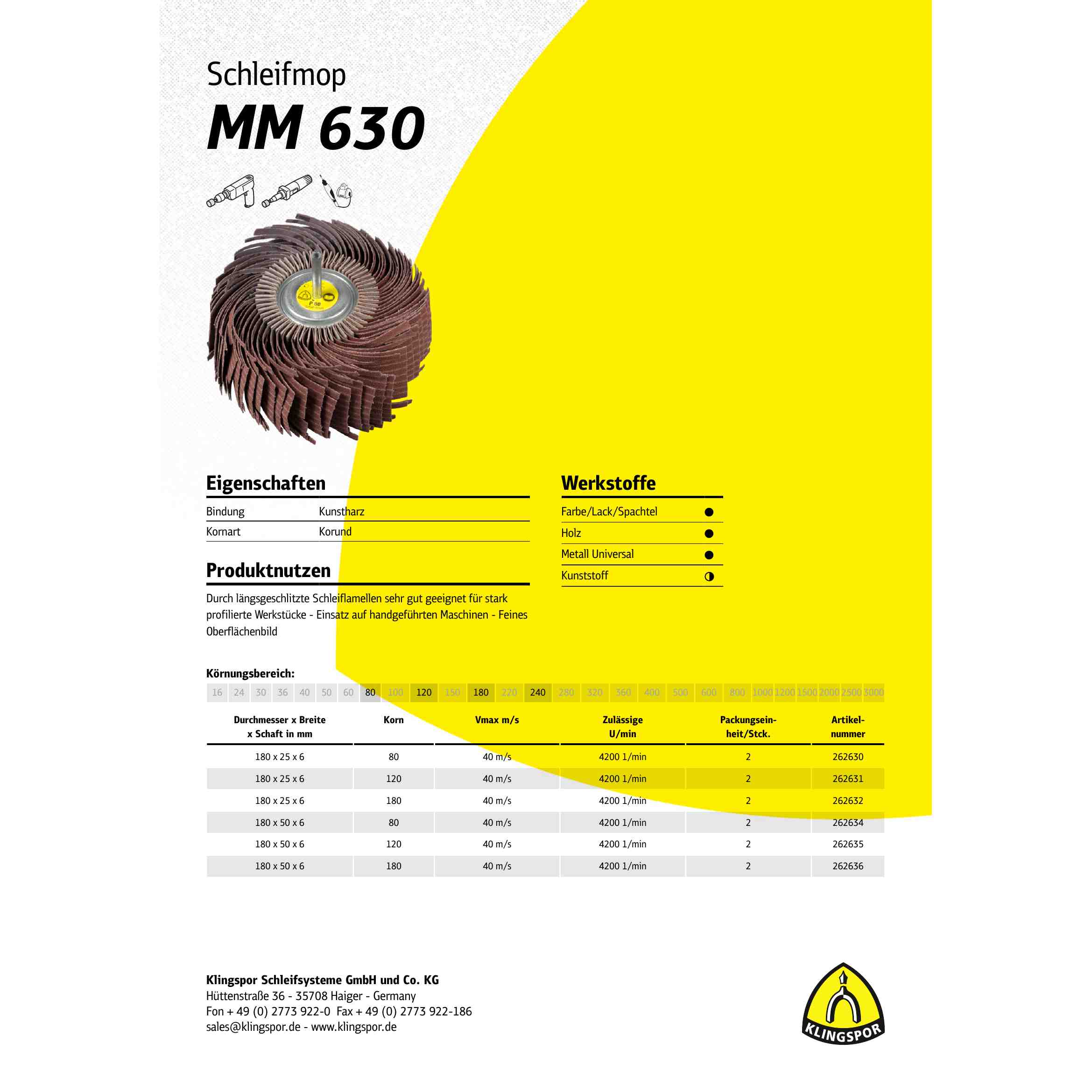 Die Klingspormm 630 Schleifmopräder LS 309 JF sind aus hochwertigen Materialien gefertigt und bieten eine hohe Standzeit. Sie eignen sich für die Bearbeitung von Metall, Edelstahl, Aluminium und anderen Werkstoffen.