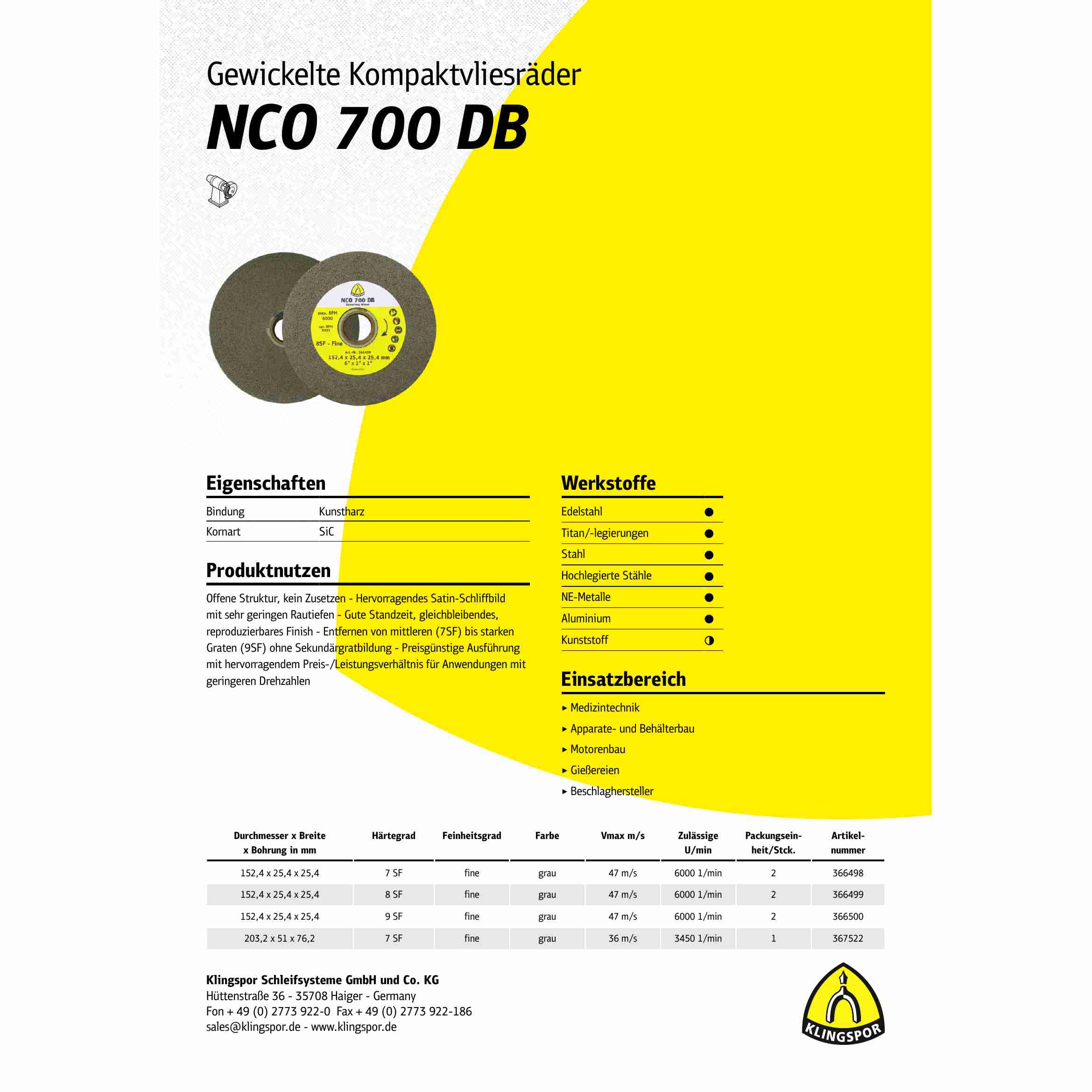 2 x Klingspor NCO 700DB Kompaktscheiben 7 SF weich 152,4 x 25,4 x 25,4 mm Fine Siliziumkarbid