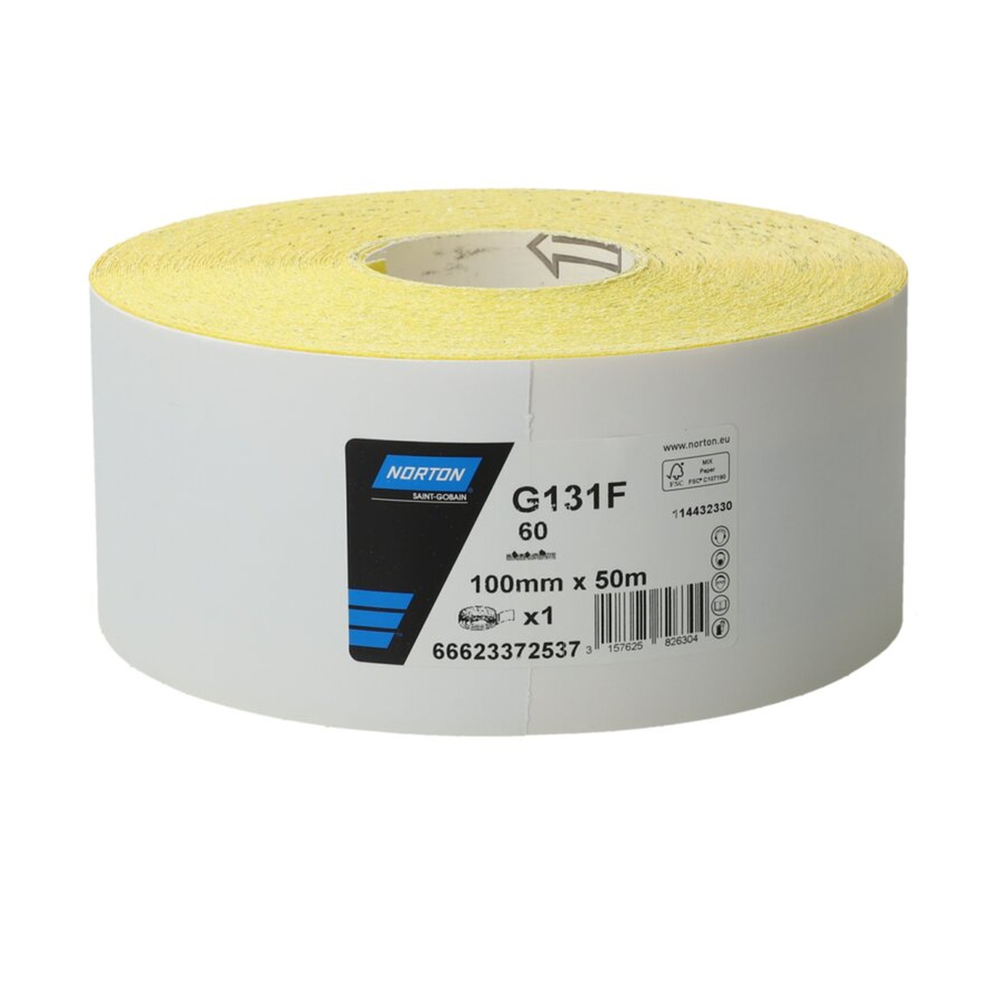 2 x Norton Schleifrolle Schleifpapier 100mm x 50m G131F 60 - Hochwertiges Schleifmittel