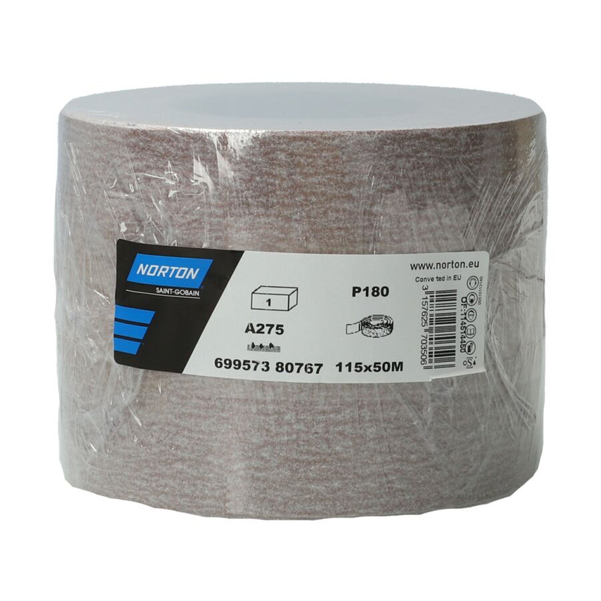 2 x Norton Schleifrolle Schleifpapier 115 mm x 50 m A275 180, ideal für glatte Oberflächen