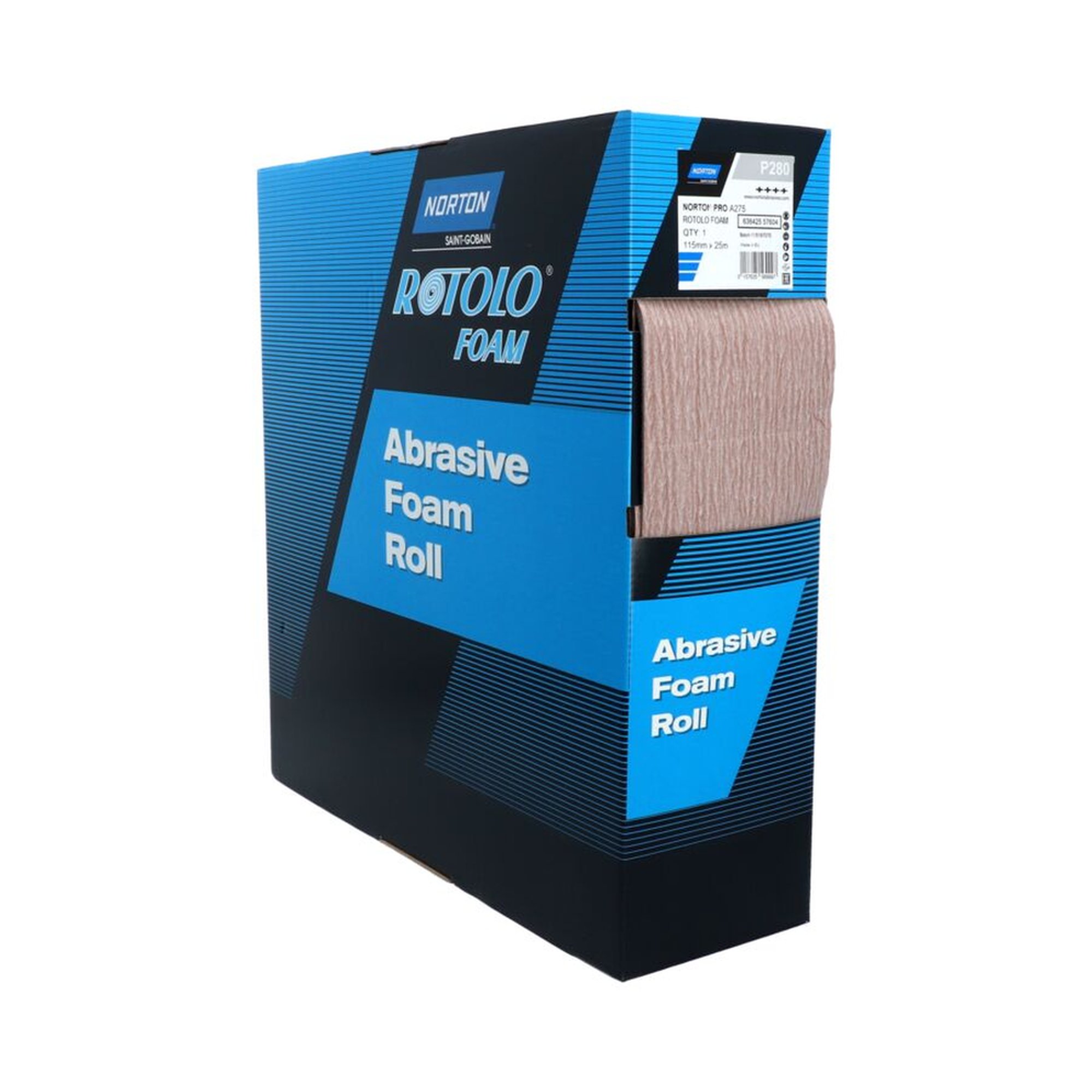 Die 2x NORTON Schleifrolle Schleifpapier | 115mmx25 m A275 280 Grau ist ein hochwertiges Produkt, das speziell für den Feinschliff an runden Kanten, Konturen und Rundungen entwickelt wurde. Mit ihrer flexiblen und anpassungsfähigen Schaumstoffunterlage ermöglicht sie eine sehr gute Verteilung des Schleifdrucks, wodurch ein Überschleifen verhindert wird. Dadurch erhalten Sie ein hervorragendes Finish auf Grundierungen und Decklacken.