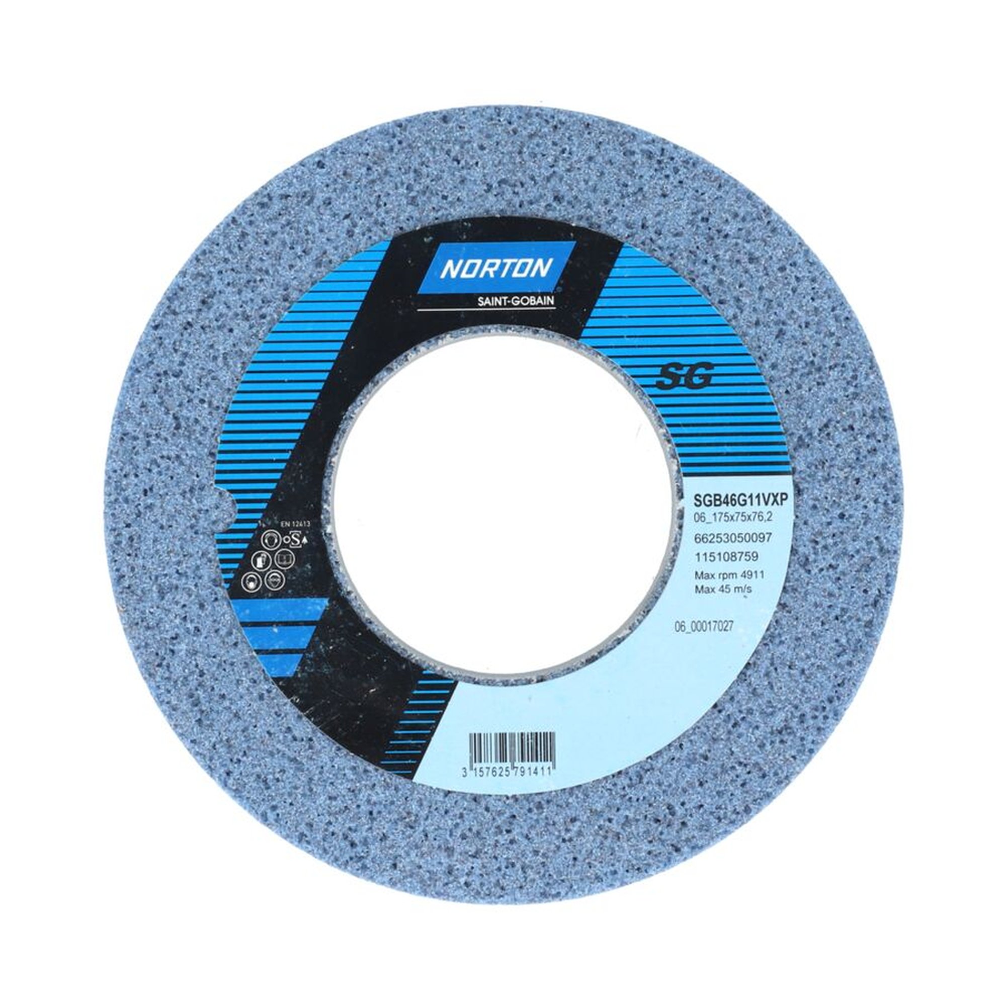 Der zylindrische Schleiftopf 06 von Norton, Modell SGB46G11VXP, ist eine hochwertige, keramisch gebundene Schleifscheibe, die sich durch ihre außergewöhnliche Leistungsfähigkeit und Präzision auszeichnet. Mit den Maßen 175x75x mm76.2/20/20mm und einer Körnung von K46 bietet dieses Produkt eine optimale Lösung für das professionelle Schärfen und Schleifen von verschiedenen Stahlwerkzeugen und Fräsern.