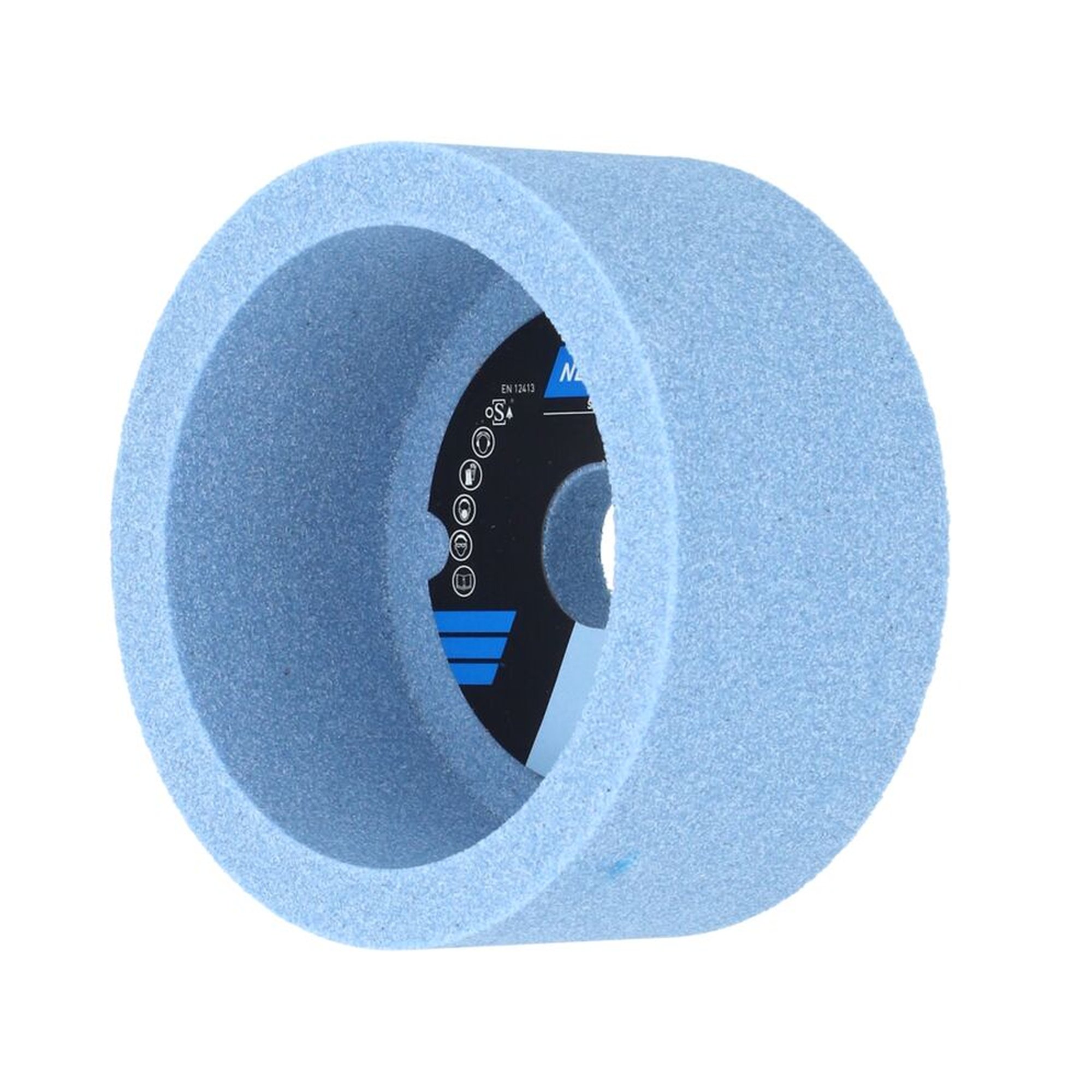 Hochleistungsfähiger zylindrischer Schleiftopf (100x50x20/10/10mm) mit Körnung K60 für präzises Schleifen in der Werkzeugindustrie. Keramisch gebunden für optimale Standzeit und Abtragsleistung.,