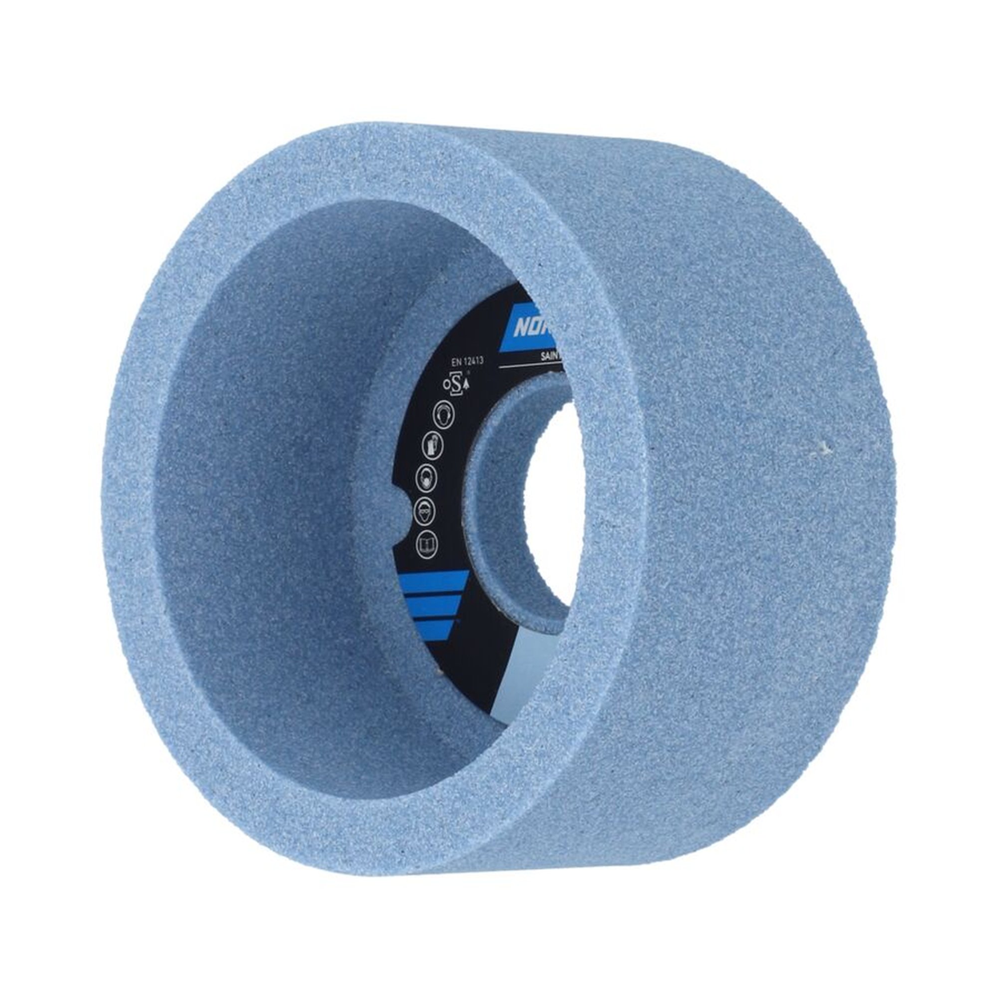 Hochleistungs-Schleiftopf (100x50x32/10/10mm, K60) von Norton für präzises Schleifen und Schärfen in der Werkzeugindustrie. Keramikgebunden mit hoher Abtragsleistung und langer Standzeit.,