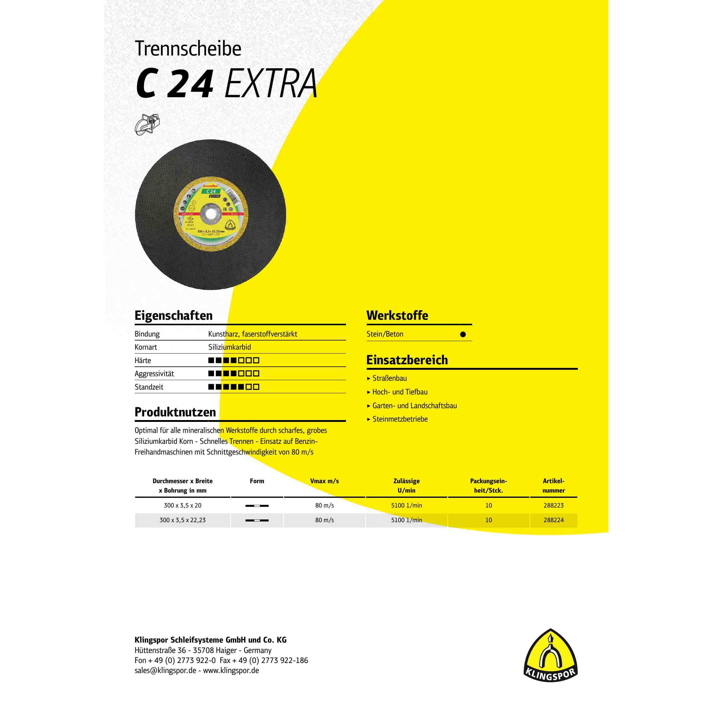 20 x Klingspor C 24 EX Großtrennscheiben, 300 x 3,5 x 20 mm gerade | Großpack für Industrie