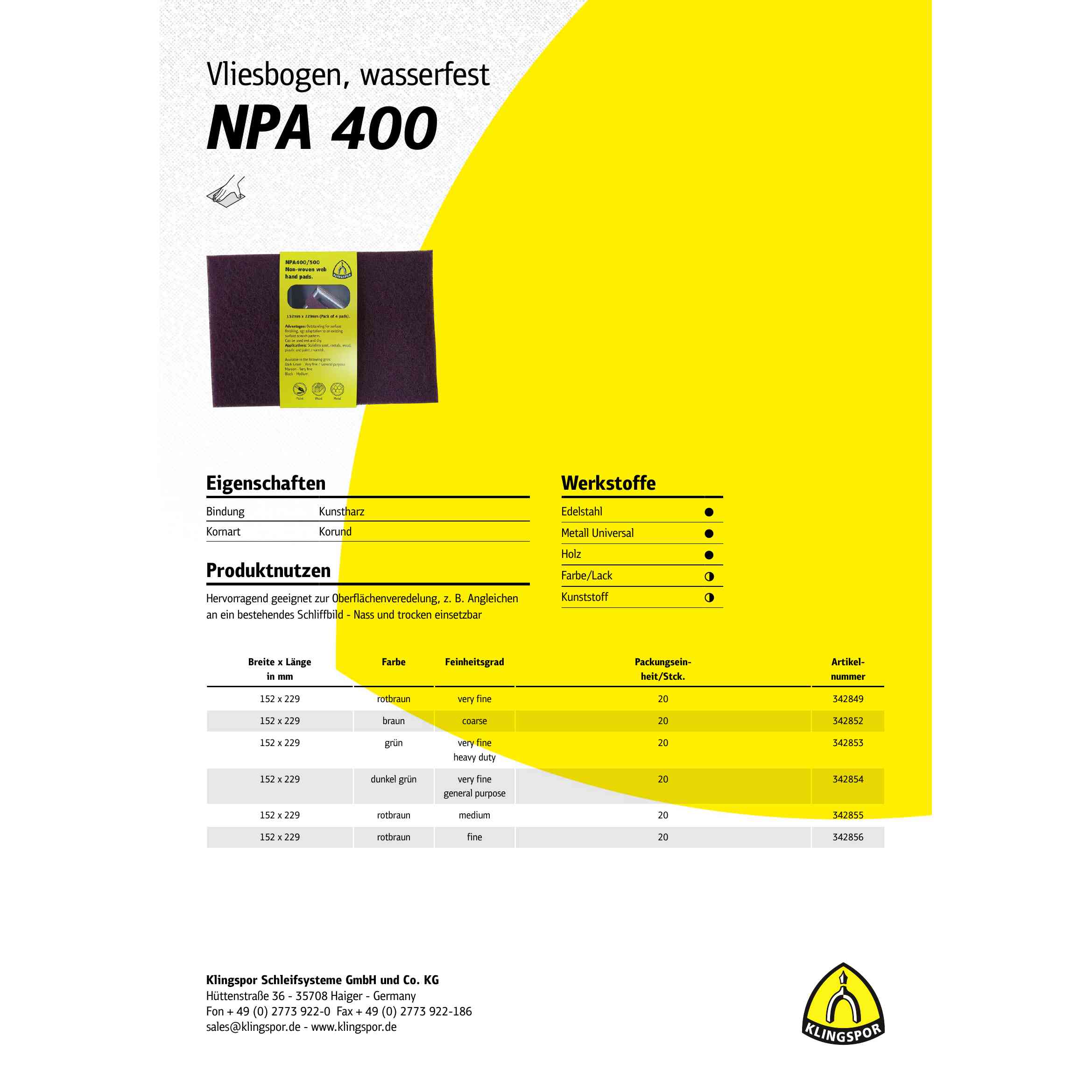 20 x Klingspor NPA 400 Vliesbogen, 152 x 229 mm Very fine Heavy Duty Korund