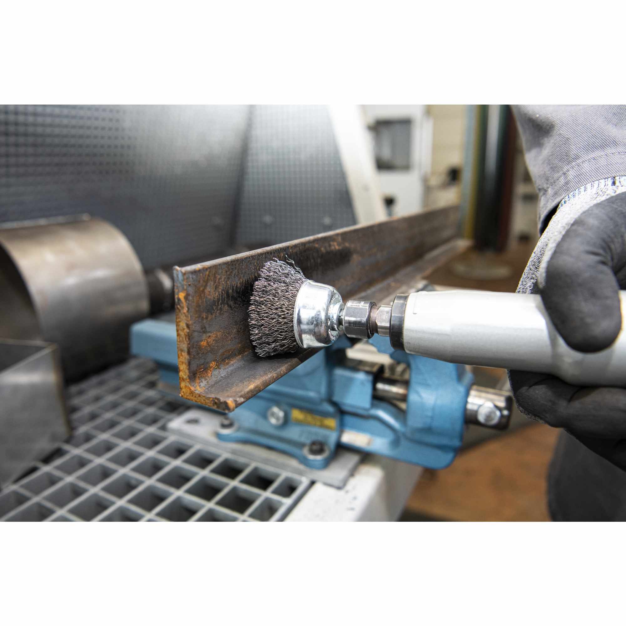 Vorteile: Ideales Werkzeug zum Reinigen von kleinen und mittelgroßen Flächen - Gewellter Draht ideal für Feinbearbeitung oder Oberflächenvorbereitung von Stahl oder Edelstahl - Entfernt Farbe, Rost, Verkrustungen