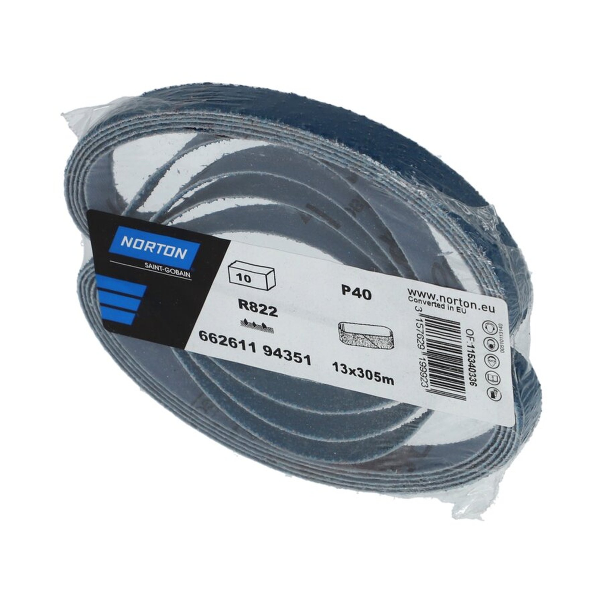 200 x Norton Schleifband NORZON R822 | 13 x 305 mm | Korn 40 | Hochleistungsschleifen