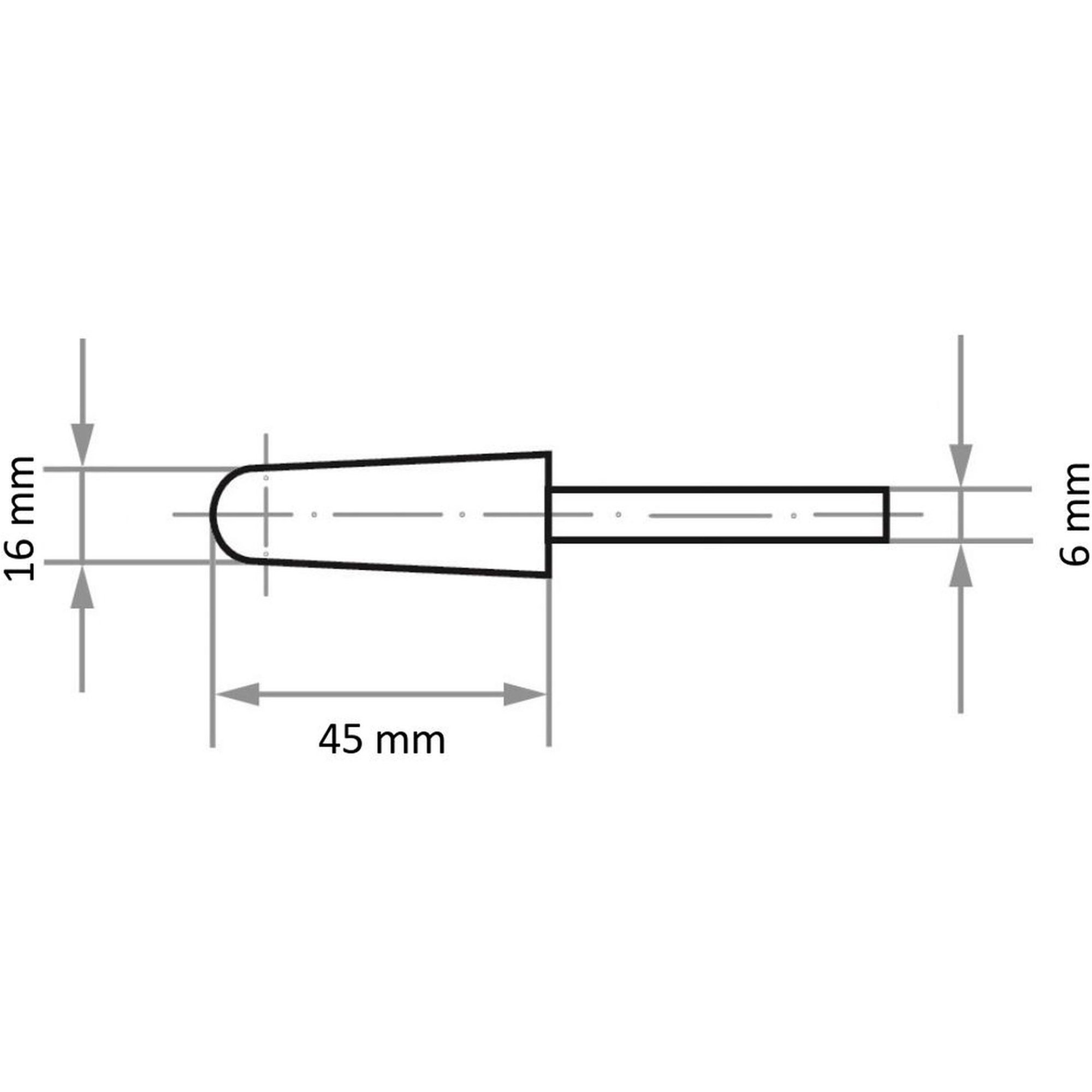 Mit einer Größe von 16x45mm ist der Schleifstift kompakt und handlich. Sie können ihn problemlos in Ihrer Werkzeugkiste verstauen und bei Bedarf schnell zur Hand nehmen.
