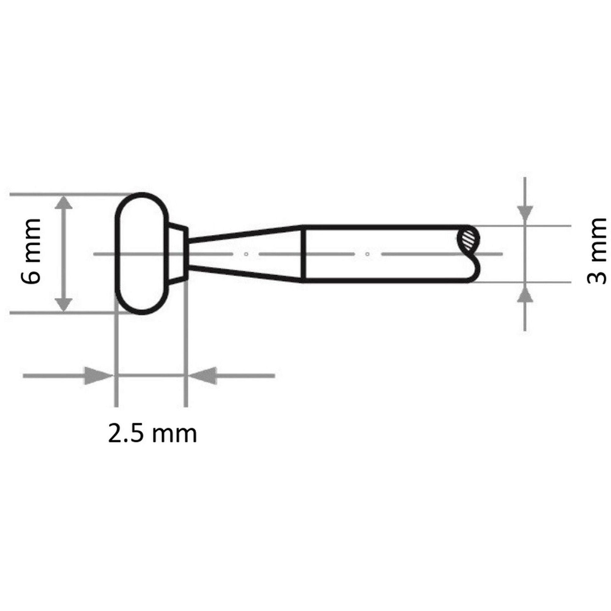 20x LUKAS Schleifstift D26 Sonderform 6x2.5 mm Schaft 3 mm | Korn 100