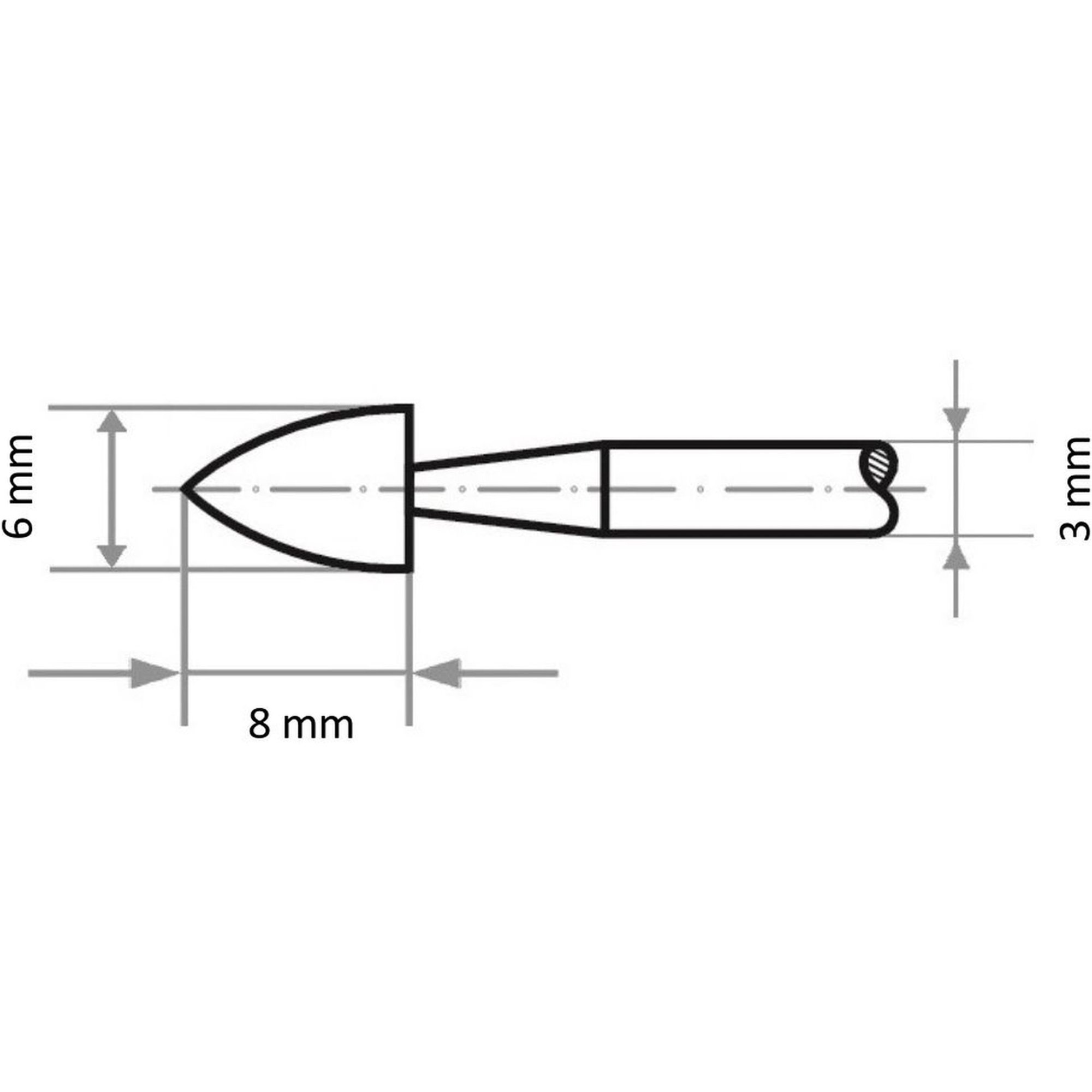 20x LUKAS Schleifstift D35 Spitzbogenform Stahl 6x10 mm Schaft 3 mm | Korn 80