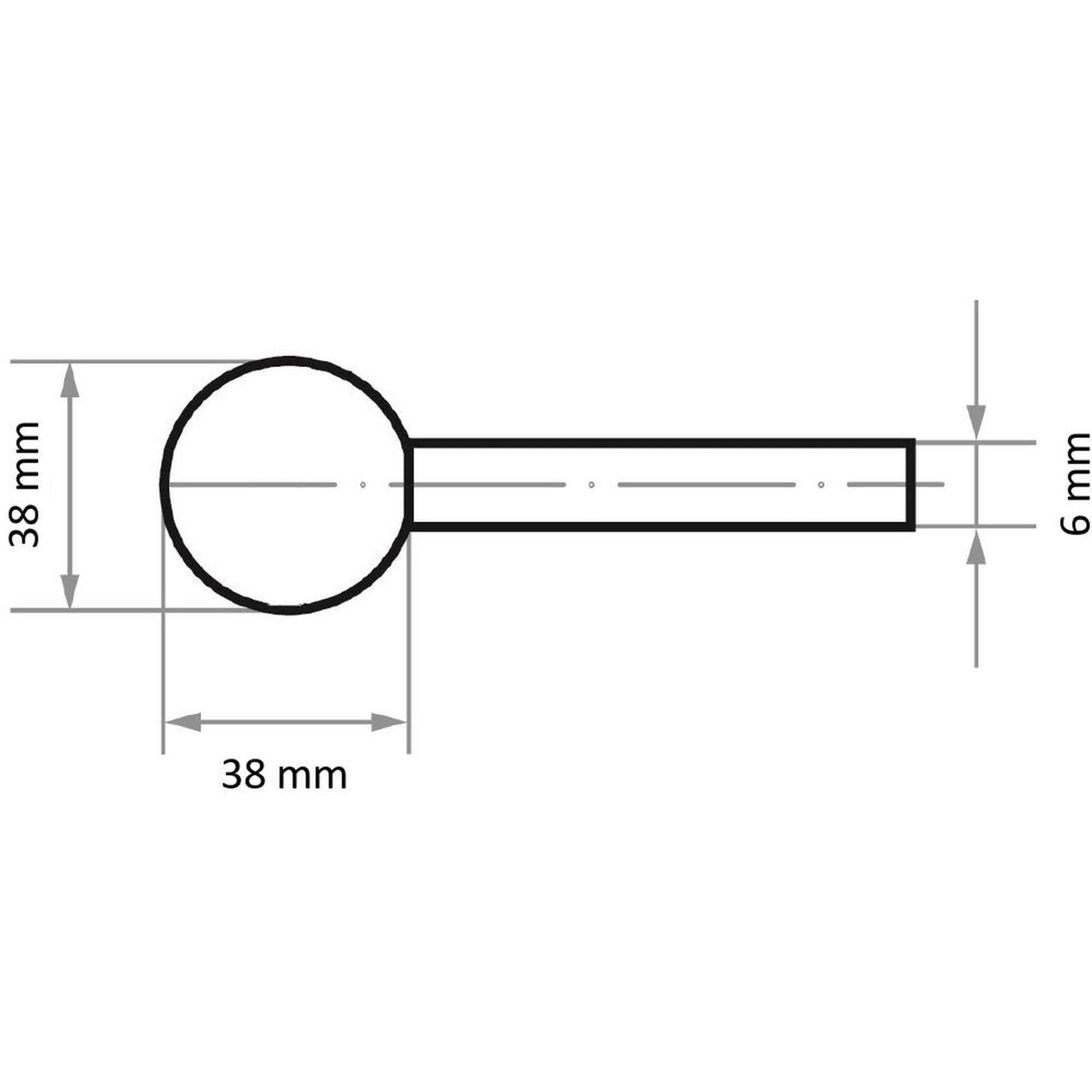 20x LUKAS Schleifstift KU Kugelform Stahl 10x10 mm Schaft 6 mm | Korn 60
