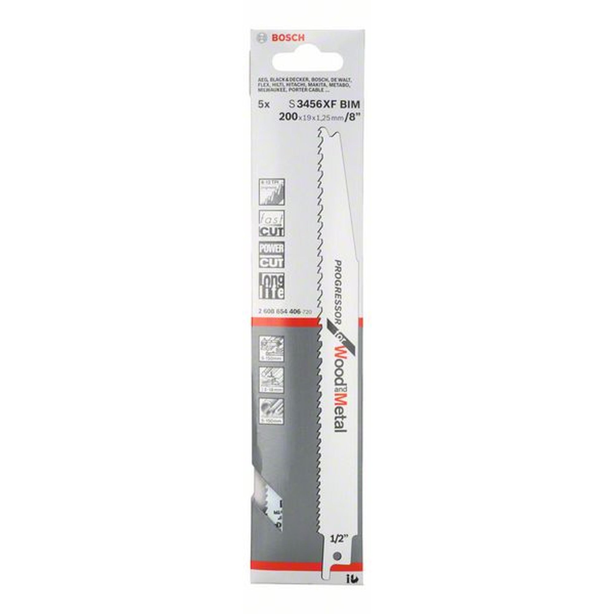 Besonderheiten: Die 25x BOSCH Säbelsägeblätter S 3456 XF, Progressor für Holz und Metall, bieten leistungsstarke und schnelle Schnitte in verschiedenen Materialien